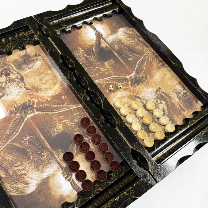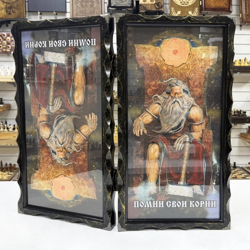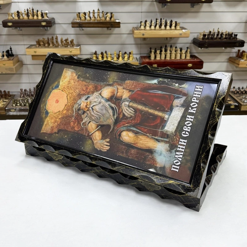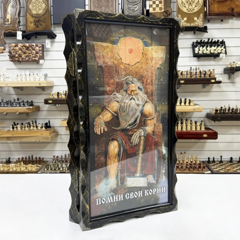 Представляем вам нарды из массива липы и стекла- Помни корни свои, которые станут изысканным дополнением вашей коллекции настольных игр. Размеры в раскрытом виде составляют 63 х 64 х 4 см, что делает их удобными для игры и демонстрации.