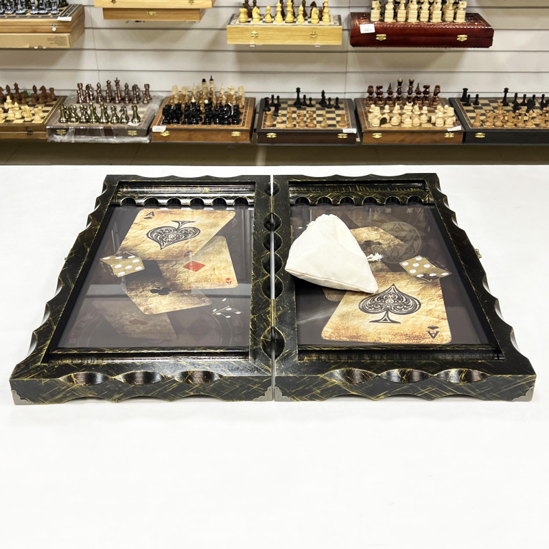 Представляем вам нарды из массива липы и стекла - Туз, которые станут изысканным дополнением вашей коллекции настольных игр. Размеры в раскрытом виде составляют 63 х 63 х 4 см, что делает их удобными для игры и демонстрации.