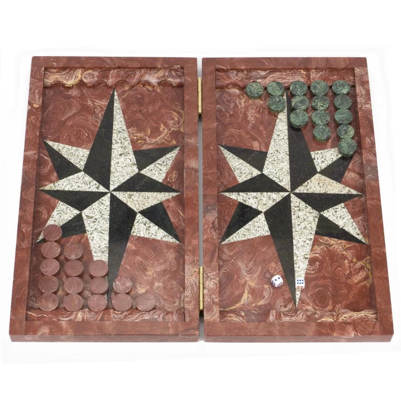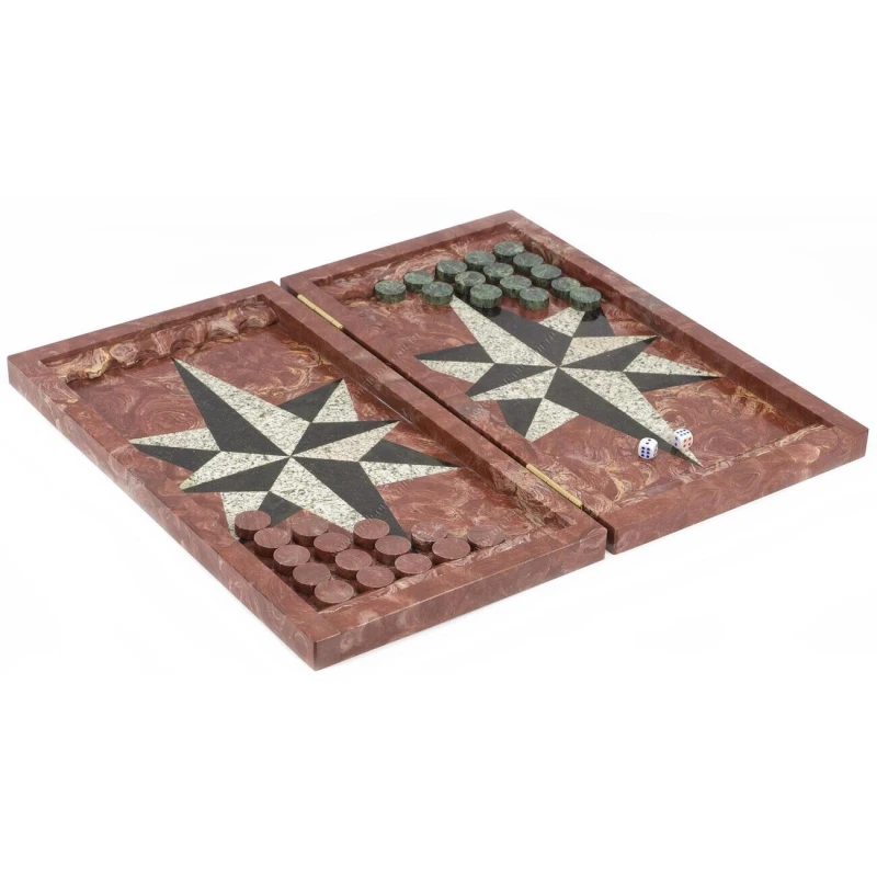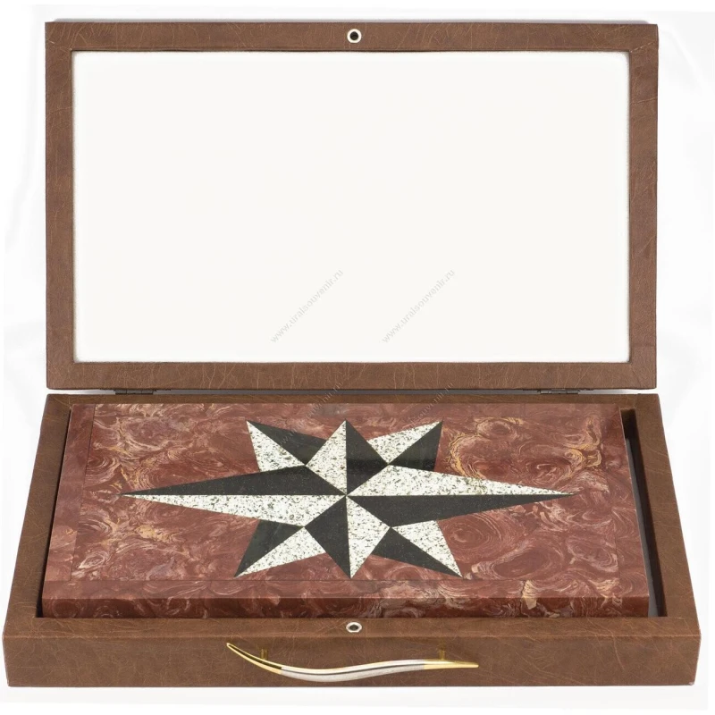 Нарды Звезда лемезит, змеевик, гранит 480х440х25 мм