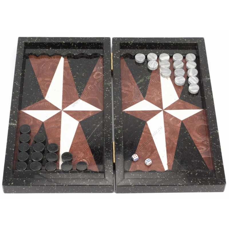 Нарды Звезда змеевик, лемезит, мрамор 500х460х30 мм