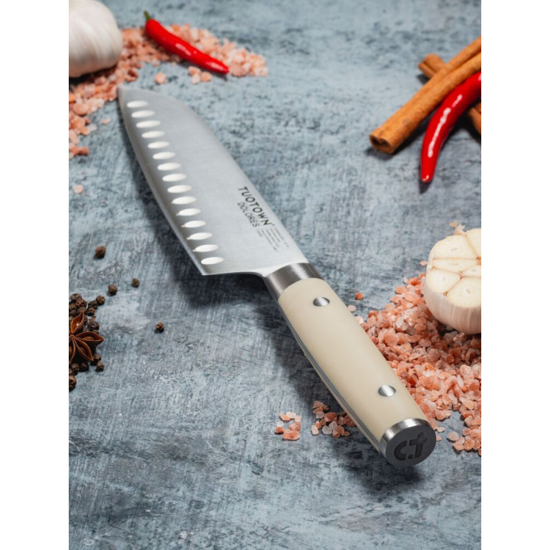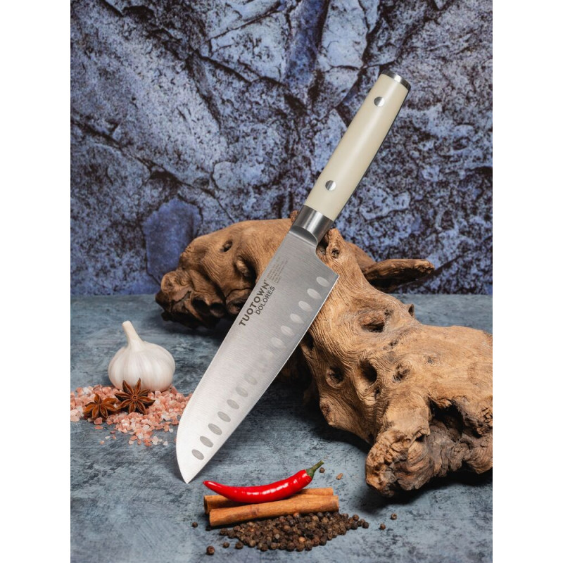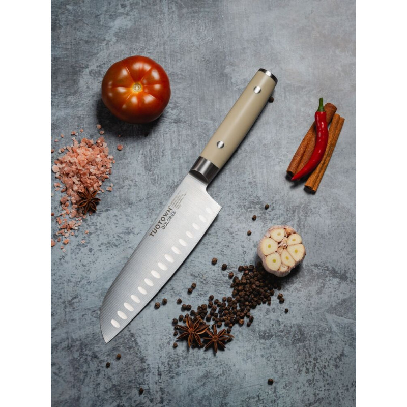 Представляем вашему вниманию кухонный нож Dolores D, который станет незаменимым помощником на вашей кухне. Этот универсальный инструмент идеально подходит для нарезки, измельчения и разделки различных продуктов, что делает его отличным выбором как для профессионалов, так и для любителей готовить дома.