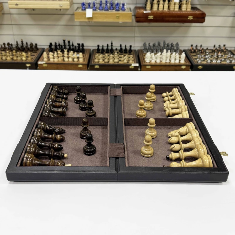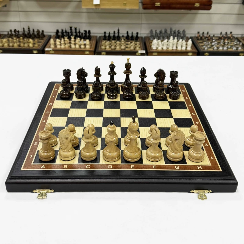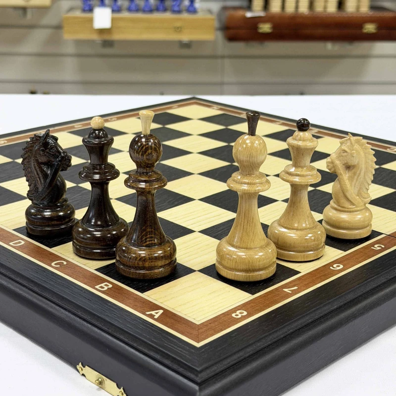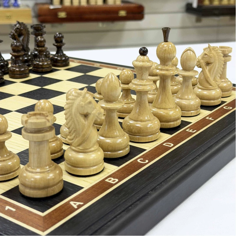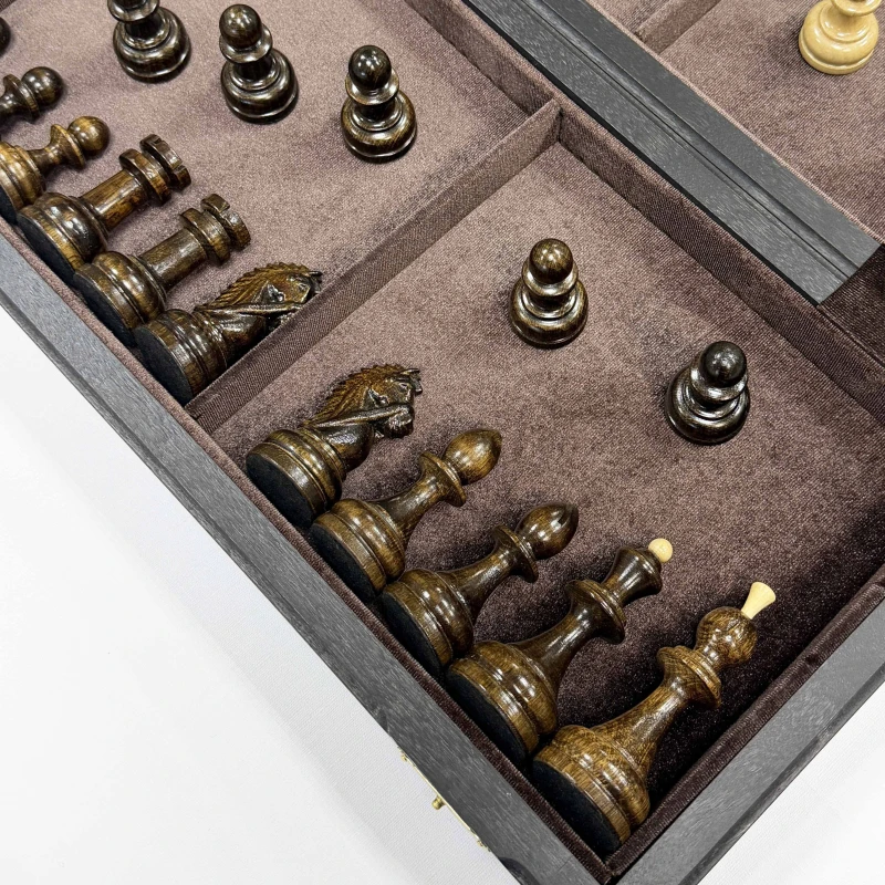 Подарочные шахматы из моренного дуба с резными фигурами граб