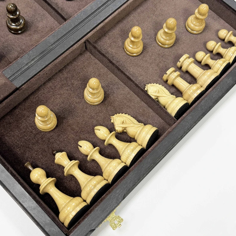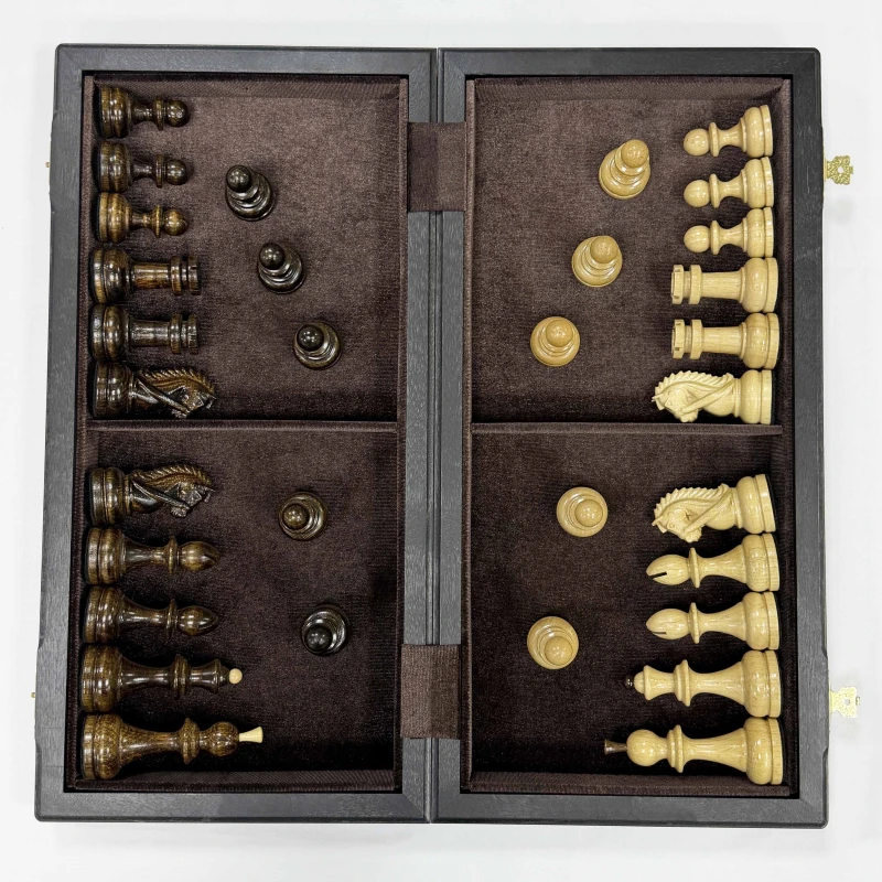 Шахматы из моренного дуба с бархатной подкладкой внутри и резными фигурами из граба отличная идея для подарка. Доска выполнена из шпона ценных пород дерева таких как ясень и моренный дуб. материал корпуса дуб. Фигуры из граба отлично гармонируют с доской и имеют Высота короля 10 см Высота пешки 5 см Диаметр основания короля 3.7 см Диаметр основания пешки 3 см Размер клетки 4.5 см Шахматы деревянные - это элегантная и изысканная настольная игра для двоих, которая не только развивает логическое мышление, но и приносит удовольствие от тактических сражений на шахматной доске. Эти шахматы подарочные являются прекрасным выбором для любителей этой древней игры. Изготовленные из качественного дерева, шахматы обладают прочностью и долговечностью. Деревянная текстура добавляет натуральности и теплоты внешнему виду шахмат. Эта классическая настольная игра представляет собой прекрасный способ провести время в компании близких или друзей. Шахматы требуют стратегического мышления, позволяют развивать аналитические способности и улучшать концентрацию. Они стимулируют мозговую активность и помогают тренировать память. Неотъемлемая часть культуры и искусства, шахматы подарочные являются прекрасным подарком для ценителей этой игры. Они могут быть отличным презентом на праздник или юбилей, символизируя уважение к интеллектуальным способностям и стратегическому мышлению. Одной из главных особенностей этих шахмат является их большой размер, что делает игру еще более захватывающей и интересной. Большие фигуры создают эффектное зрелище на игровом поле и позволяют игрокам лучше видеть и анализировать ходы. Каждая фигура шахмат ручной работы имеет свою уникальную форму и детали, которые придают им особый шарм. Мастерски выполненные короли, ферзи, слоны, кони, ладьи и пешки обязательно поразят ваш глаз своей красотой. Погрузитесь в мир шахматных сражений с этими деревянными шахматами. Они станут вашим верным спутником в стратегических баталиях и помогут развить ваше мышление до новых высот. Приглашайте своих друзей на партию шахмат и наслаждайтесь увлекательной тактической игрой!