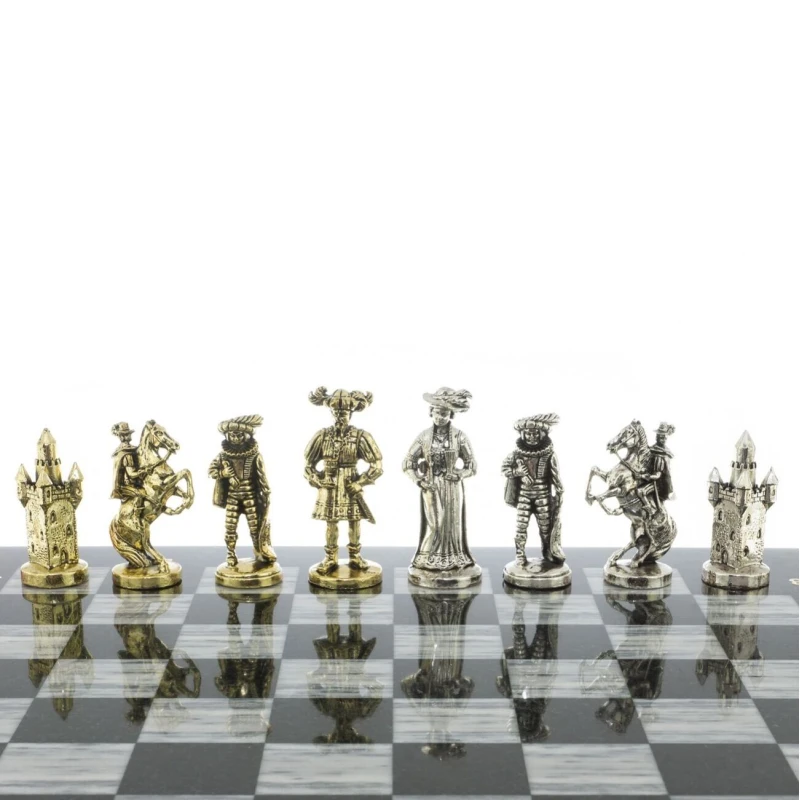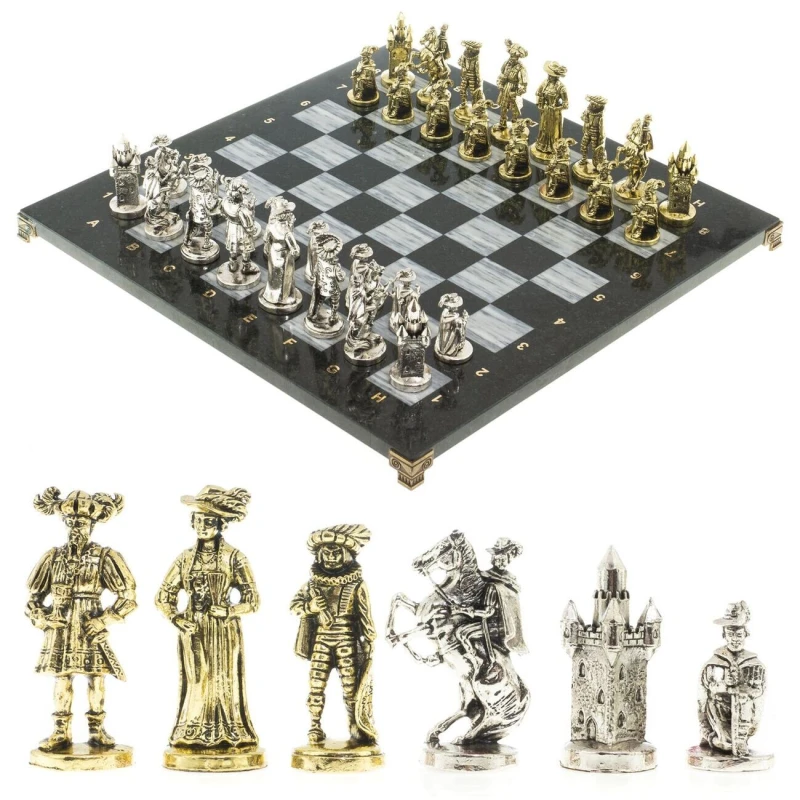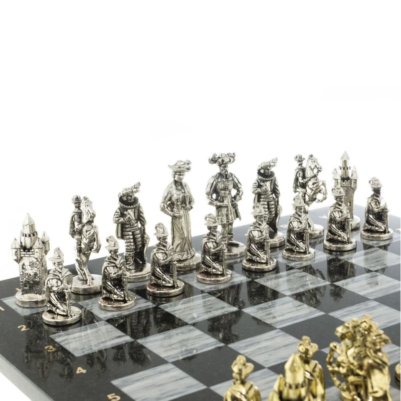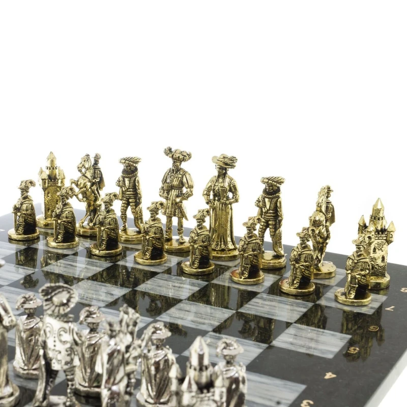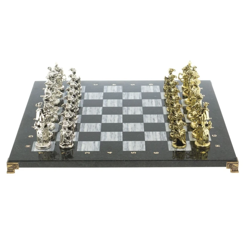 высота фигур: пешка-5,5 см, король-9 см. и весом 14500 г. Мраморные шахматы имеют стильный дизайн и вдобавок они изготавливаются вручную из безопасных и экологичных материалов.
