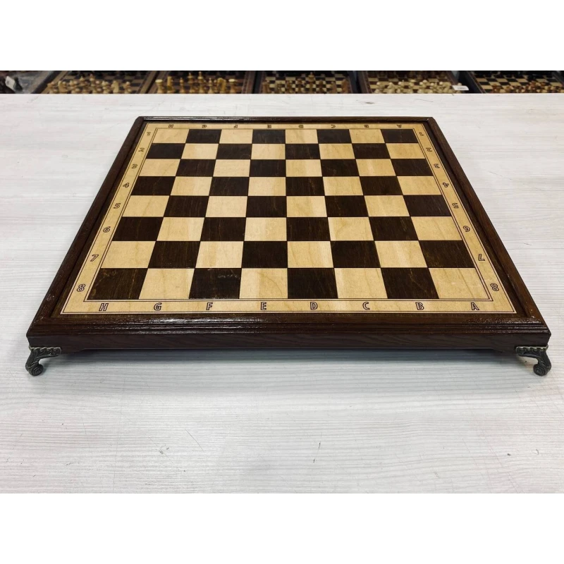 Подарочная шахматная доска без фигур. Размер клетки 4.3 см на 4.3 см. Размер доски от края до края 41.5 на 41.5 см. Покрыты глянцевым лаком. Сделана в России.