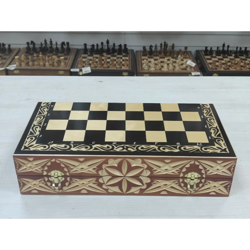 Выбирая эту шахматную доску, вы получаете отличное качество, красивый дизайн и удобство в использовании. Наслаждайтесь игрой в шахматы и нарды с этой превосходной доской!
