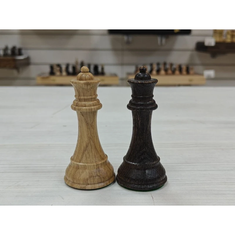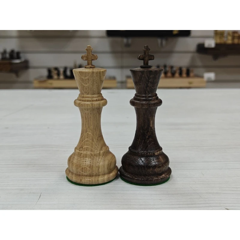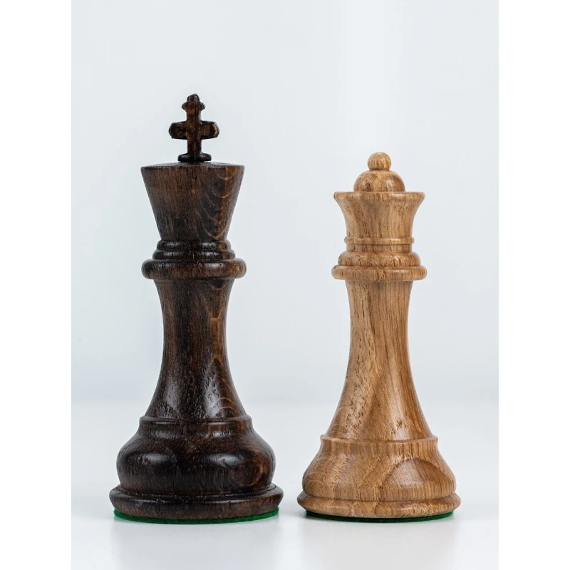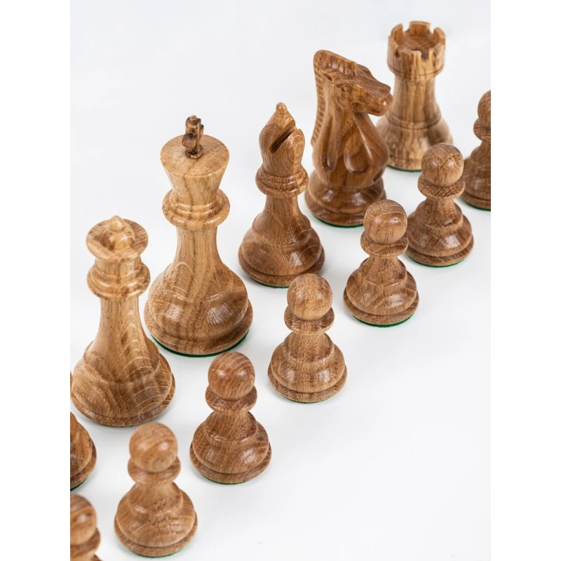 Большие шахматные фигуры сделаны из массива дуба. Классический дизайн Стаунтон самая популярная форма фигур в мире. Высота короля 10 см, высота пешки 5 см. Фигуры с утяжелением, подойдут для доски с клеткой от 4.5 см до 5.5 см. Диаметр основания короля 3.7 см, диаметр основания пешки 2.8 см. Сделаны в России.