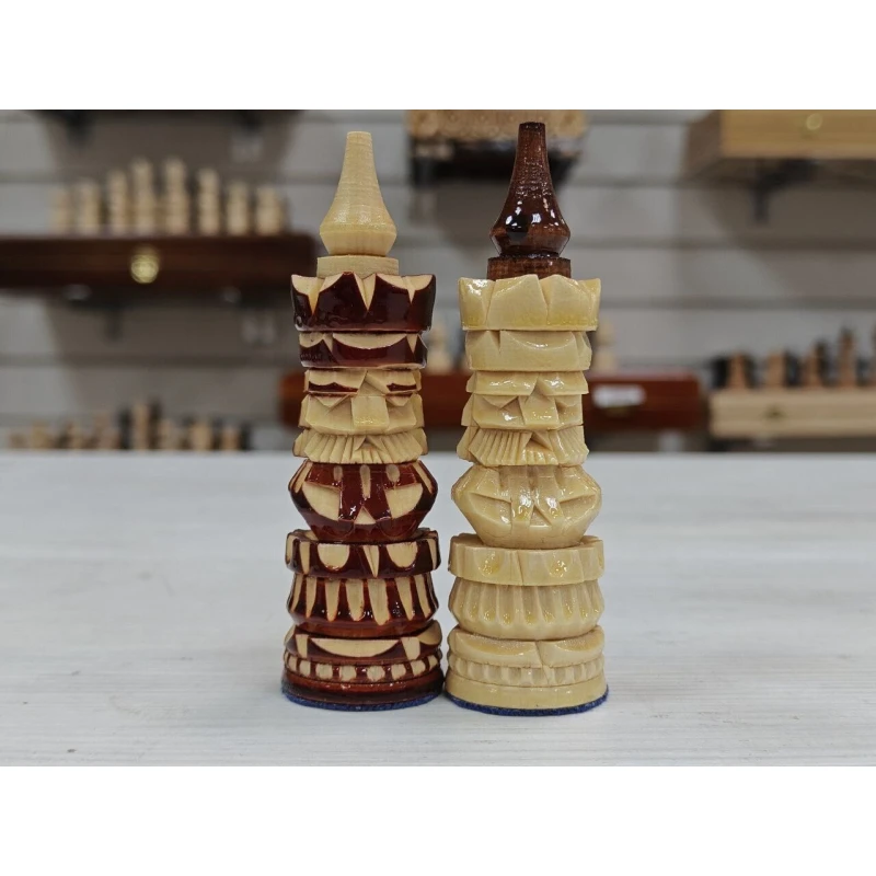 Шахматные фигуры резные ручной работы без доски. Эти фигуры являются настоящим произведением искусства, выполненным из массива липы. Фигуры Каверник Люкс - это необычный дизайн, который был создан еще в 90 годов и до сих пор остается популярным среди любителей коллекционных шахмат. Деревянные шахматные фигуры Каверник Люкс без доски - это отличный выбор для тех, кто хочет приобрести качественный продукт и собрать свои шахматы сам. Отличный дизайн обеспечивает стабильность и удобство игры, а ручная работа придает каждой фигуре индивидуальность и неповторимость. Шахматы без доски Каверник - это возможность подобрать свою собственную игровую доску или использовать уже имеющуюся. Фигуры для доски легко поместятся в любом контейнере или коробке, что делает их удобными для переноски. Отличный подарок для любителей шахмат и коллекционеров. Сделаны в России.