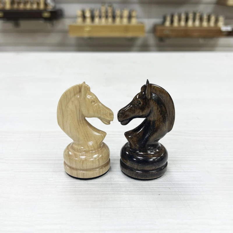 Классические шахматные фигуры с красивым резным конем. Высота короля 10 см, высота пешки 5 см. Подойдут для досок с клеткой от 4 см до 5.5 см. Материал шахматных фигур Кавказский граб, покрыты глянцевым лаком. Сделаны в России. Шахматные фигуры близки по стилю Стаунтон, но имеют свою уникальные особенности.