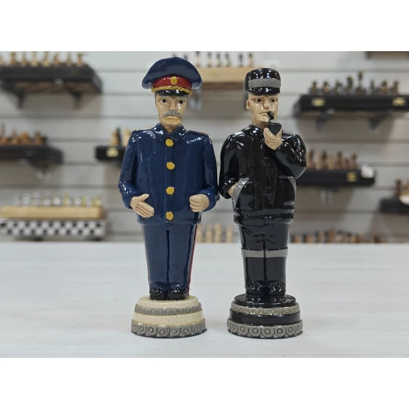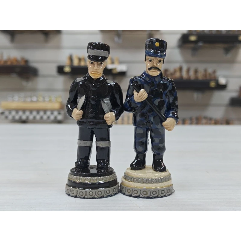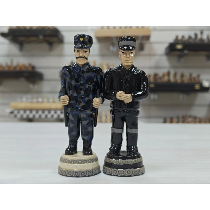 Шахматные фигуры ручной работы изготовлены из хлебного мякиша в местах лишения свободы местными умельцами, изготавливаются штучно, такие фигуры без сомнения можно назвать произведением искусства! В тематике данного набора представлены сами обитатели зон, с одной стороны, и их надзиратели с другой. Фигуры тактильно приятны благодаря лакированному покрытию и не смогут никого оставить равнодушным! Станут великолепным подарком! Высота короля 12 см пешка 9.5, диаметр основания фигур 3.3см