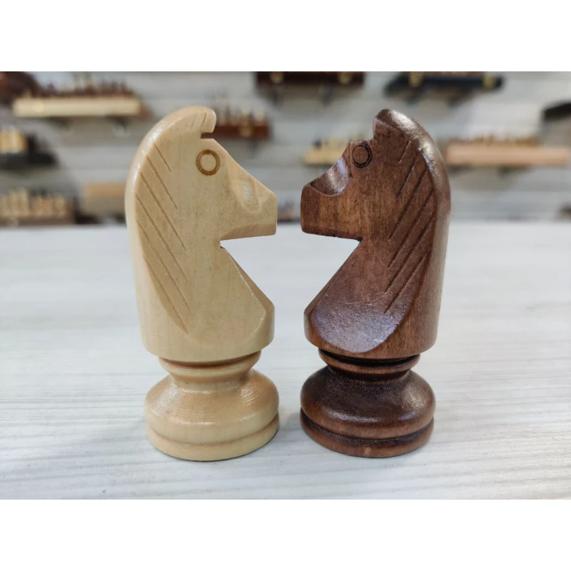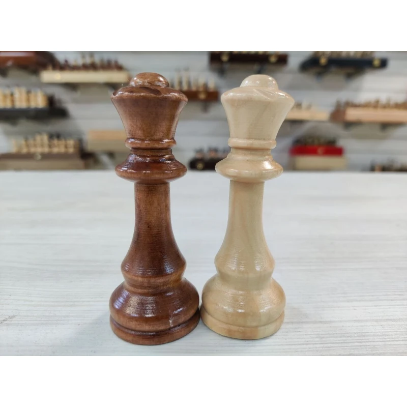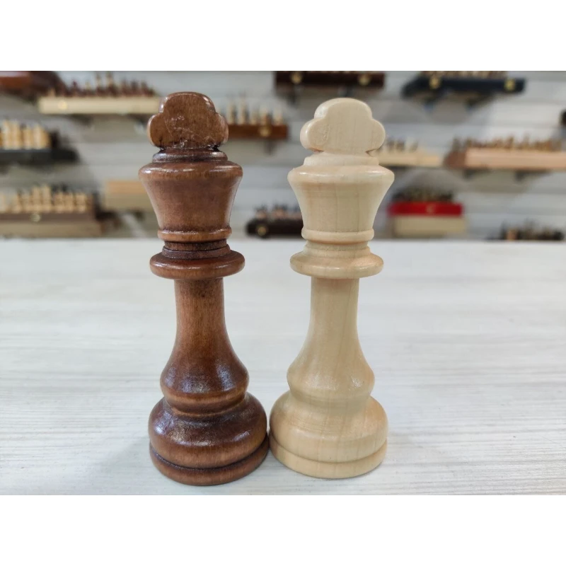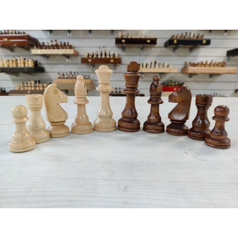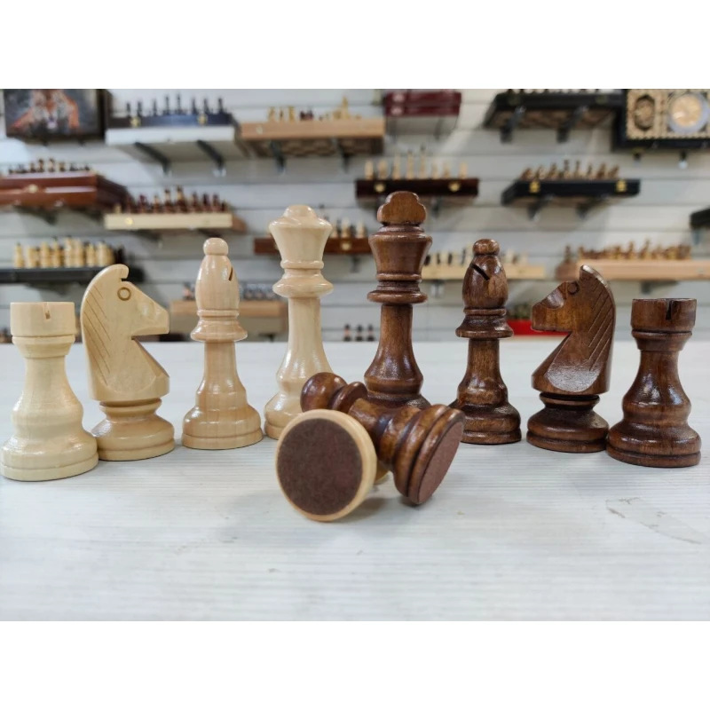 Классические шахматные фигуры в популярном стиле Стаунтон. Сделаны из дерева. Подойдут для досок с клектой от 4 см до 5.5 см.