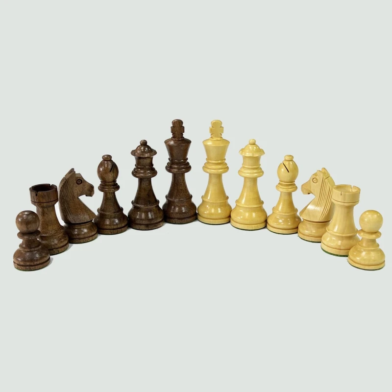 Изысканные турнирные шахматные фигуры ручной работы, созданные индийскими мастерами. Темные фигуры выполнены из благородного палисандра, светлые - из самшита. Каждая фигура тщательно отполирована вручную воском, что придает ей шелковистую гладкость. Размер короля - 9,5 см, размер пешки - 4,5 см. Этот популярный вариант шахматных фигур часто используется в чемпионатах и соревнованиях по шахматам, благодаря своему безупречному качеству и дизайну.