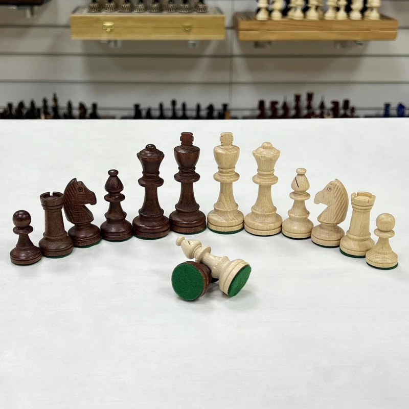 Шахматные фигуры «Стаунтон 4» от фабрики Мадон – это тот случай, который отлично подходит, как для подарка себя, так и дорогому человеку. Все составные элементы изготовлены из дуба, поэтому об их долговечности и прочности можно не беспокоится. Снизу к фигуркам приклеена тканевая подложка, которая обеспечивает отсутствие царапин и сколов на игровой поверхности, даже после тысяч партий.