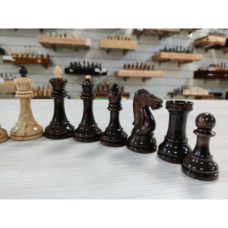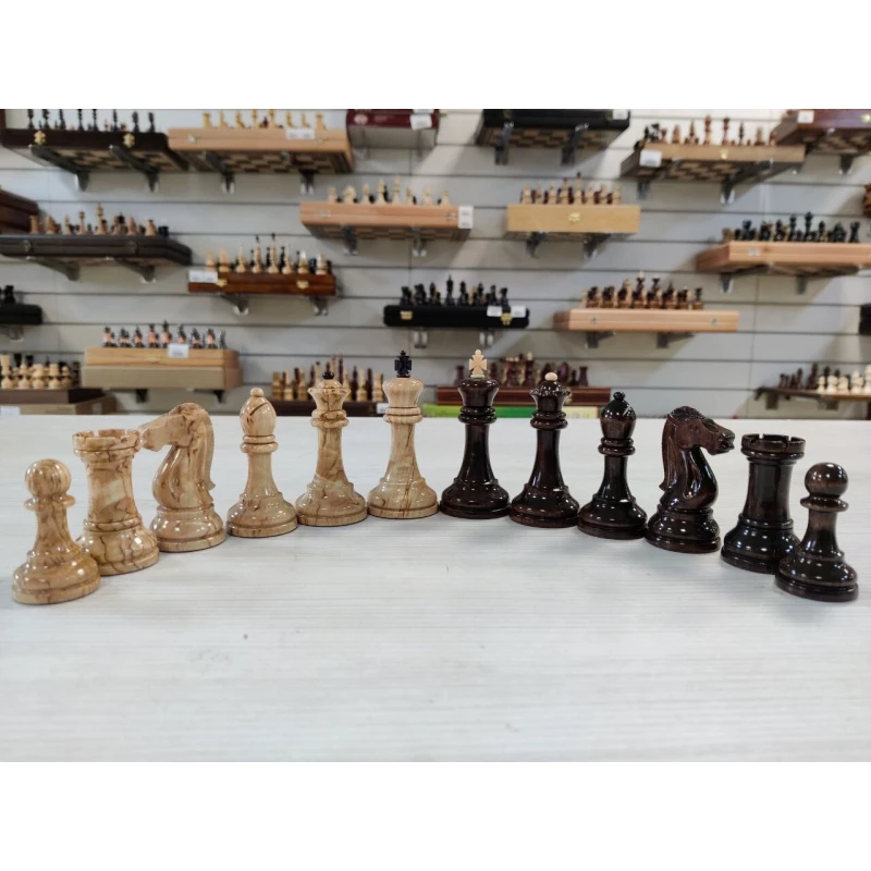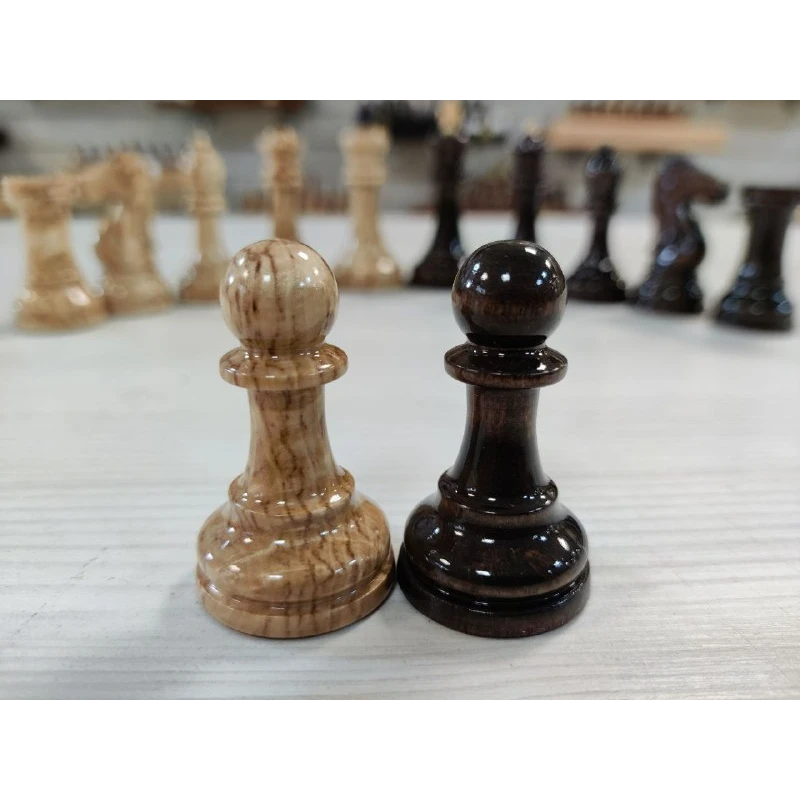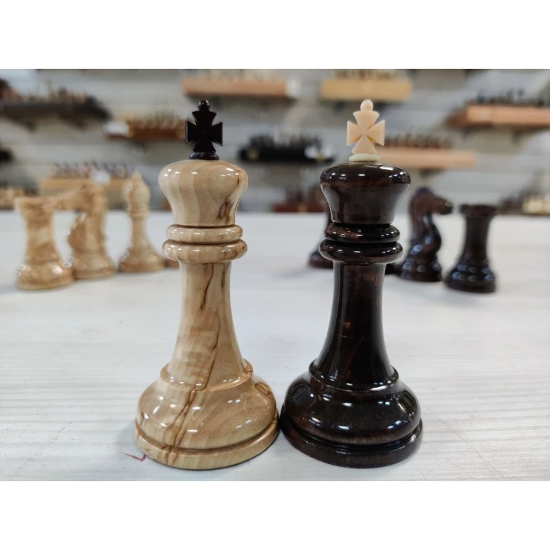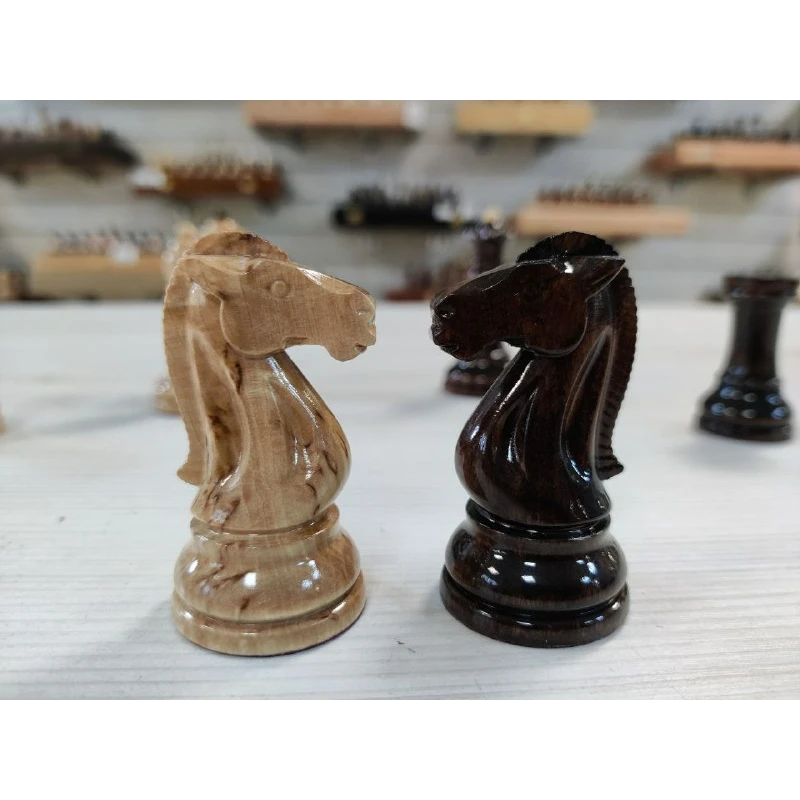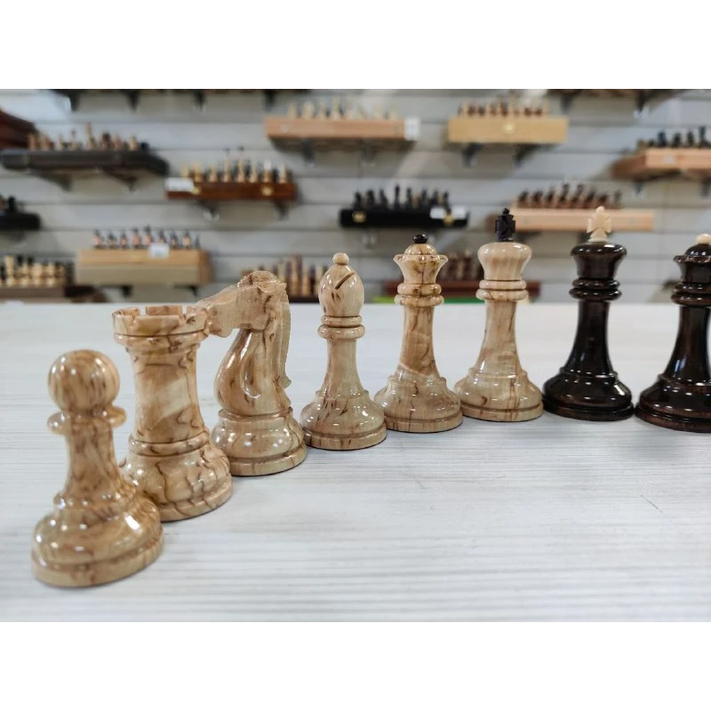 Классические шахматные фигуры из карельской березы. Ручная работа. Высота короля 8.5 см, высота пешки 5 см.