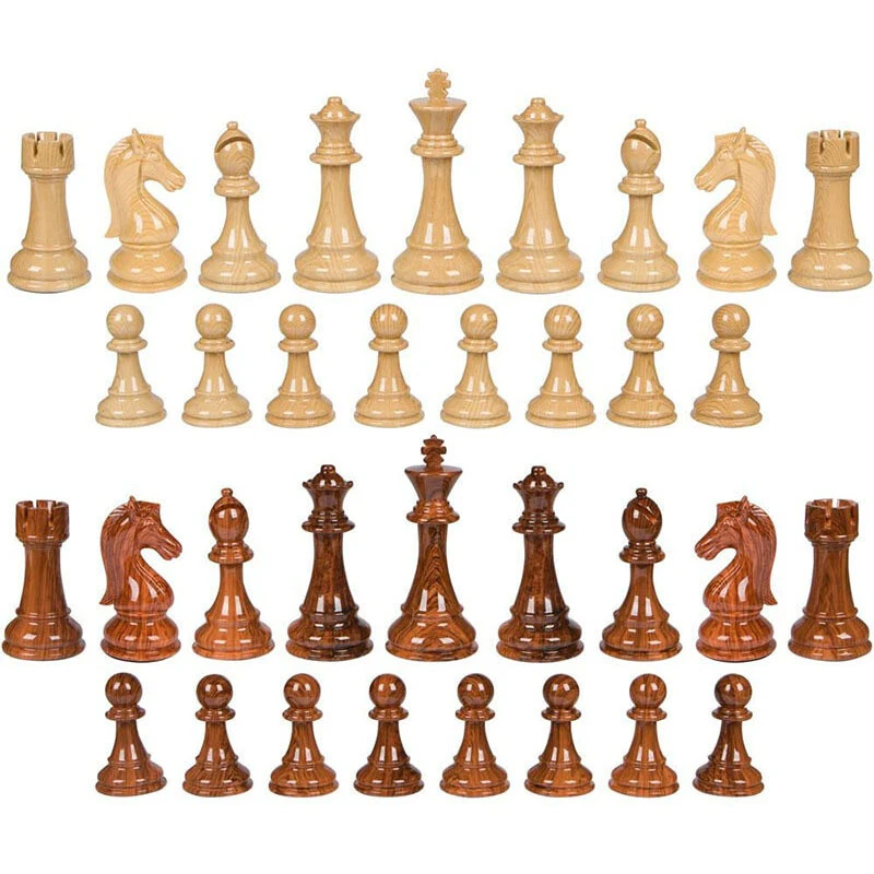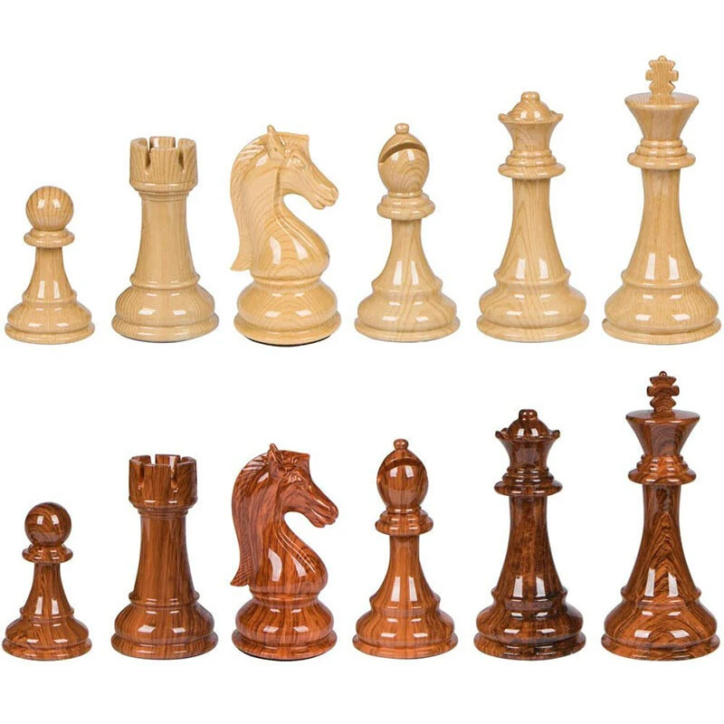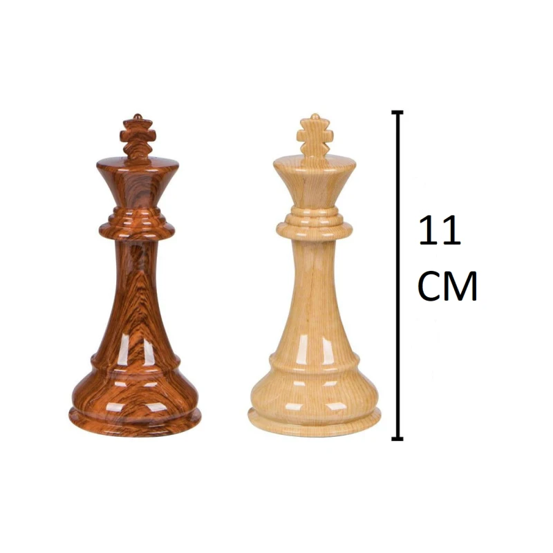 Большие утяжеленные шахматные фигуры из композитных материалов. Высота короля 11 см, высота пешки 6 см. В основании фигур есть подклейка, что бы не царапать доску.