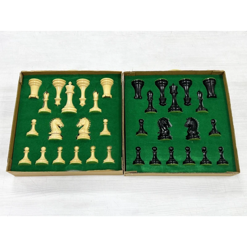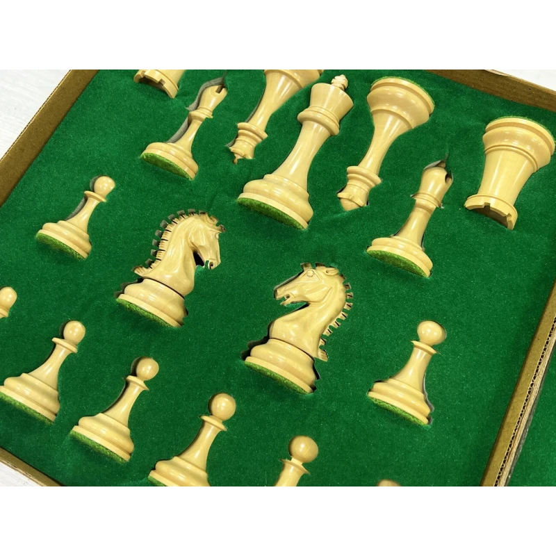 Шахматные фигуры сделаны вручную индийскими мастерами. Особое внимание стоит обратить на очень красивых шахматных коней. Фигуры выполнены в стиле Стаунтон, самый популярный дизайн шахмат в мире. В основании фигуры утяжелены и подклеены защитной тканью, что бы не царапать доску. Высота короля 9.8 см, высота пешки 5.2 см. Подойдут для досок с клеткой от 4.5 см.