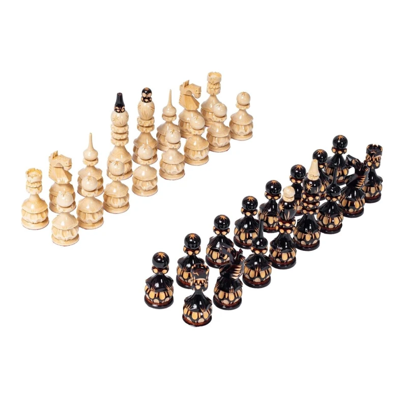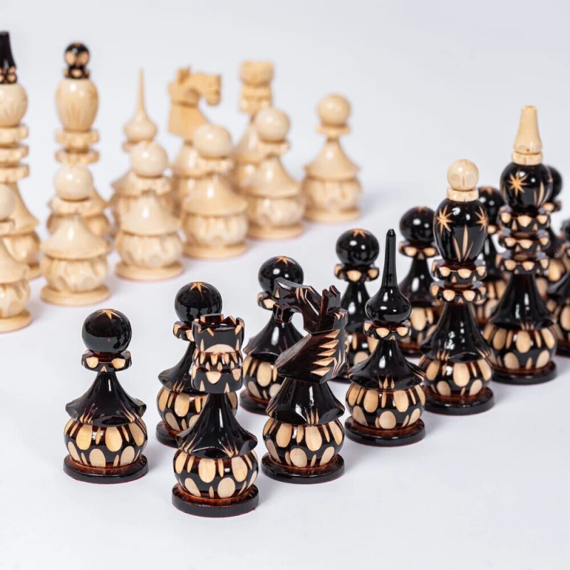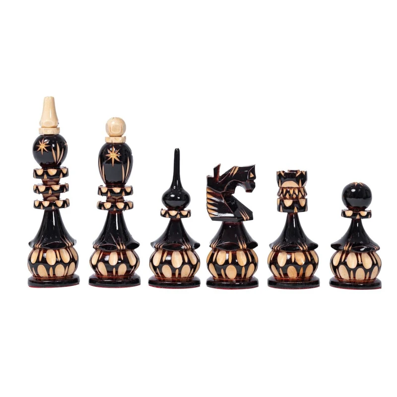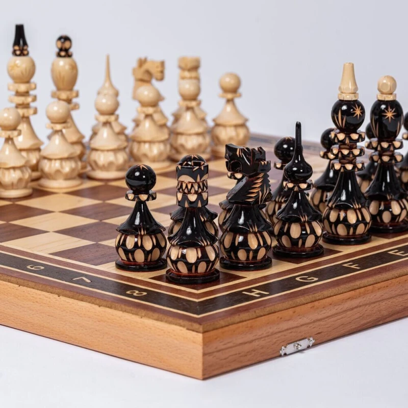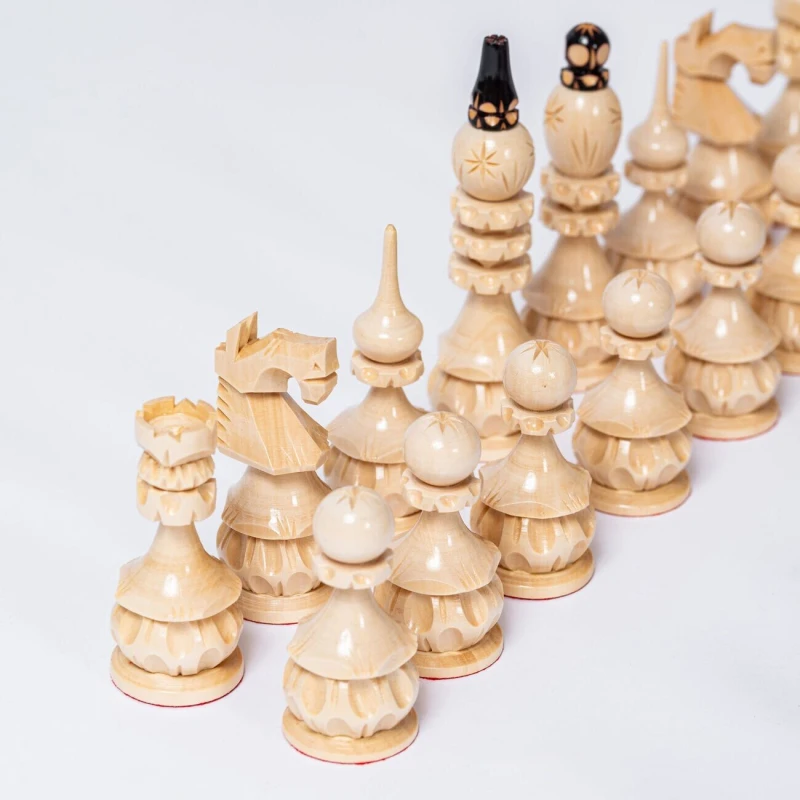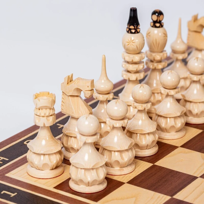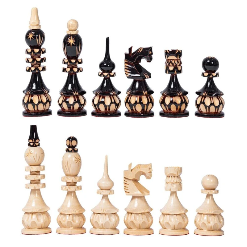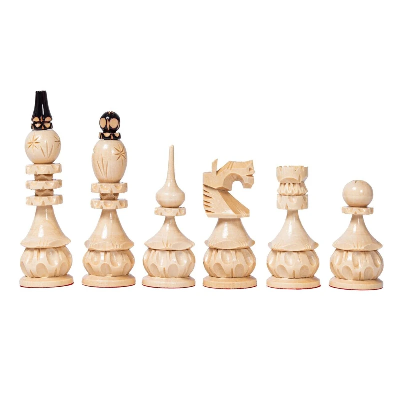 Шахматные фигуры резные ручной работы сделаны из липы.
