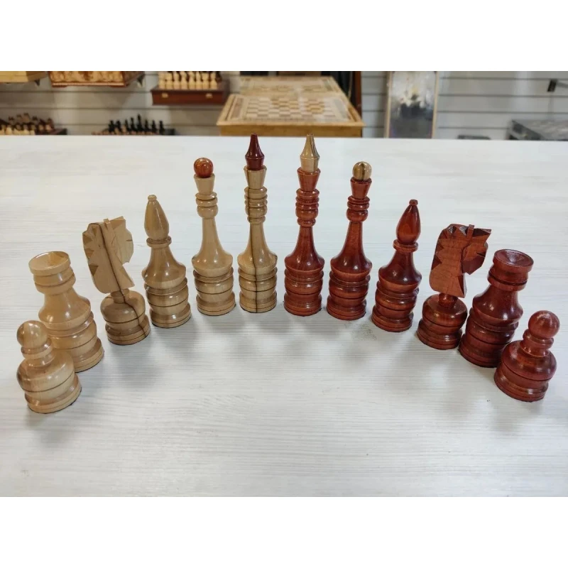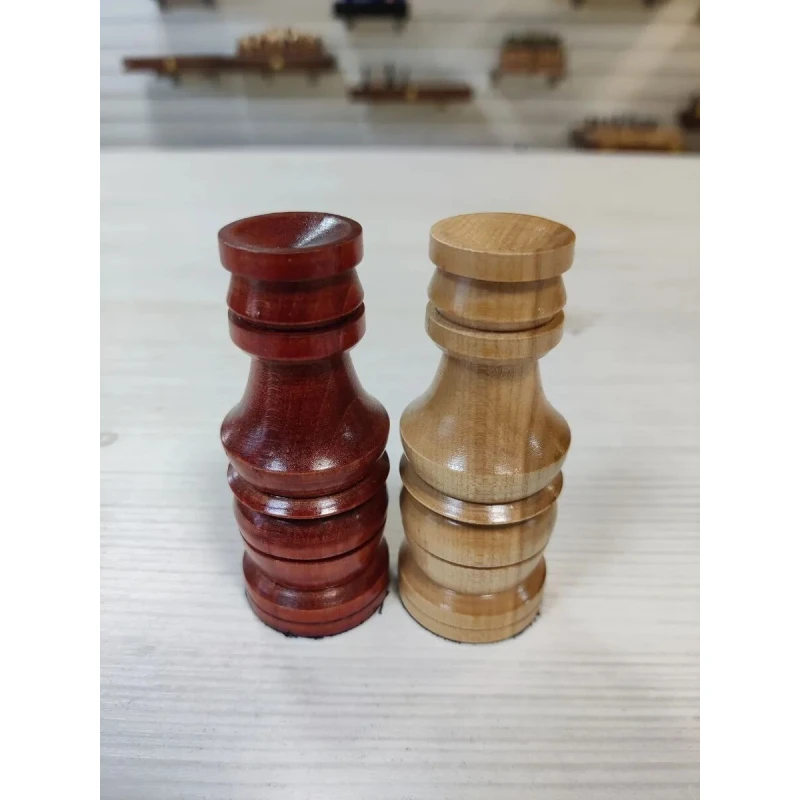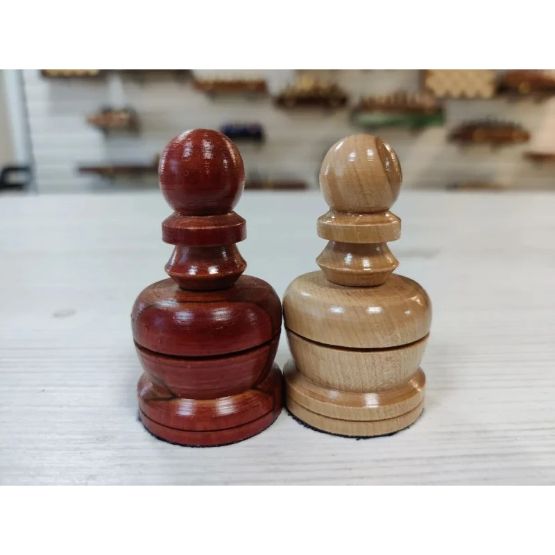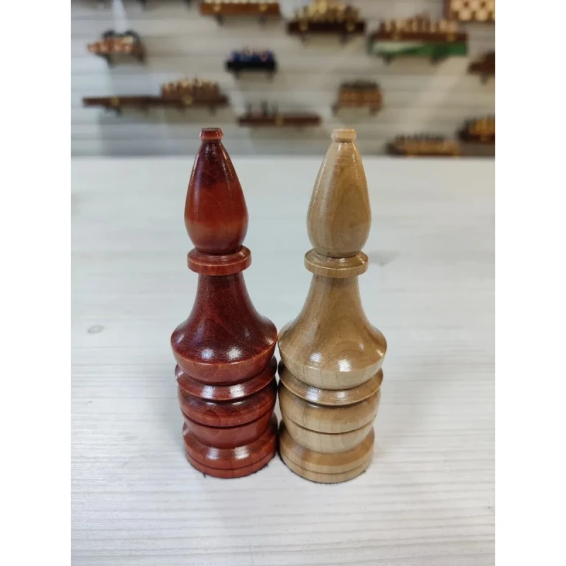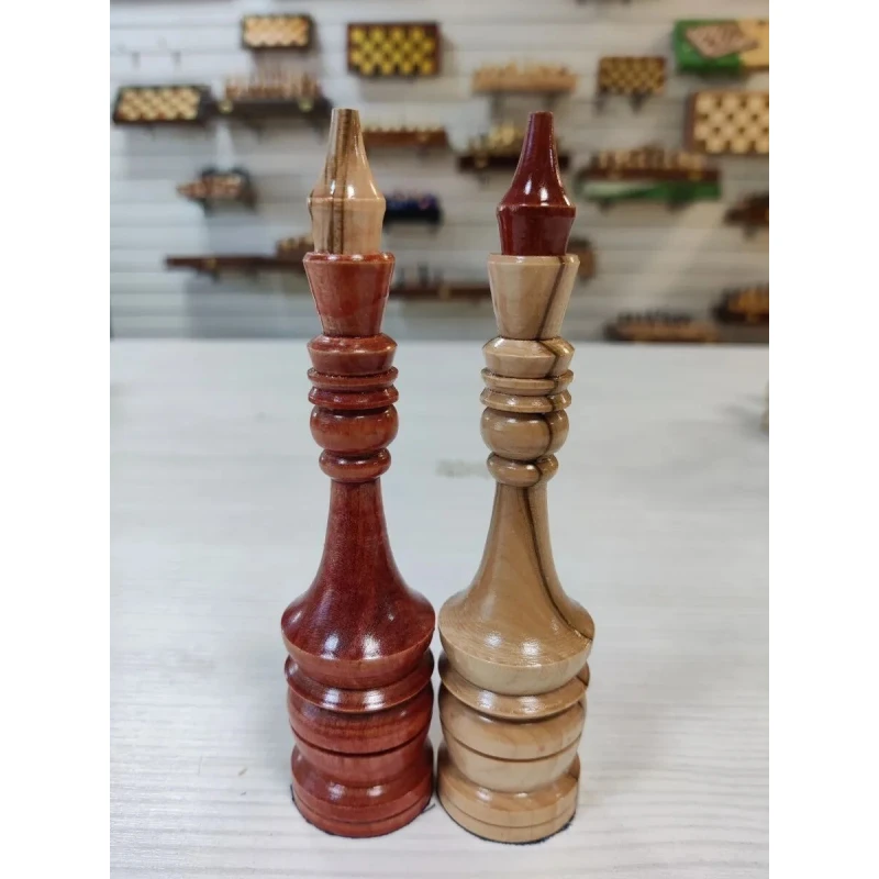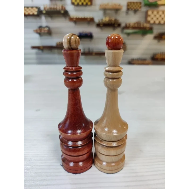 Большие шахматные фигуры ручной работы. Высота короля 14.5 см. Высота пешки 6 см. Фигуры с подклейкой. Без утяжеления, но достаточно устойчивые. Диаметр основания короля 3.3 см. Диаметр основания пешки 3.3 см. Подойдут для доски с клеткой от 4.5 см, 5 см, 5.5 см. Материал фигуры клен.