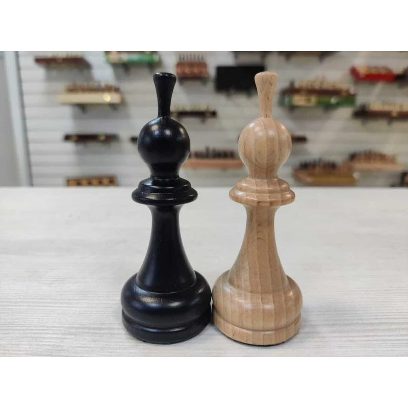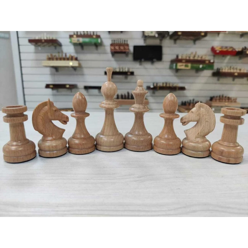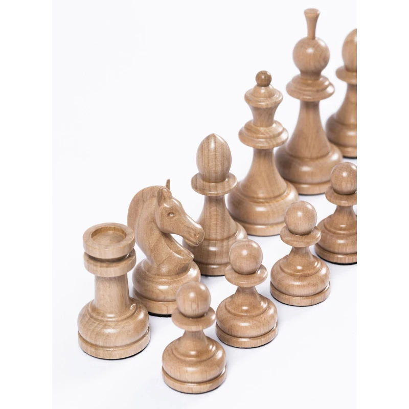 Самая популярная модель шахматных фигур в среднем ценовом сегменте из дерева. Сейчас фигуры стали производить из Кавказского граба, раньше делали из бука. Фигуры с утяжелением. Особенность набора в красивом резном шахматном коне. Подойдут для досок с клеткой 4.5 см, 5 см, 5.5 см. На клетки 4 см фигуры будут стоять тестно. Сделаны в России. Есть подклейка из ткани, что бы не царапать доску. В основании фигур вставлен металлический сердечник для утяжеления. Фигуры хорошо отфлифованы и покрыты полуглянцевым лаком.