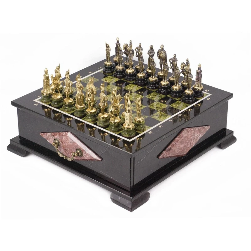 Теги: Шахматный ларец фигуры Римские змеевик 420х420х130 мм 22 кг, Шахматы