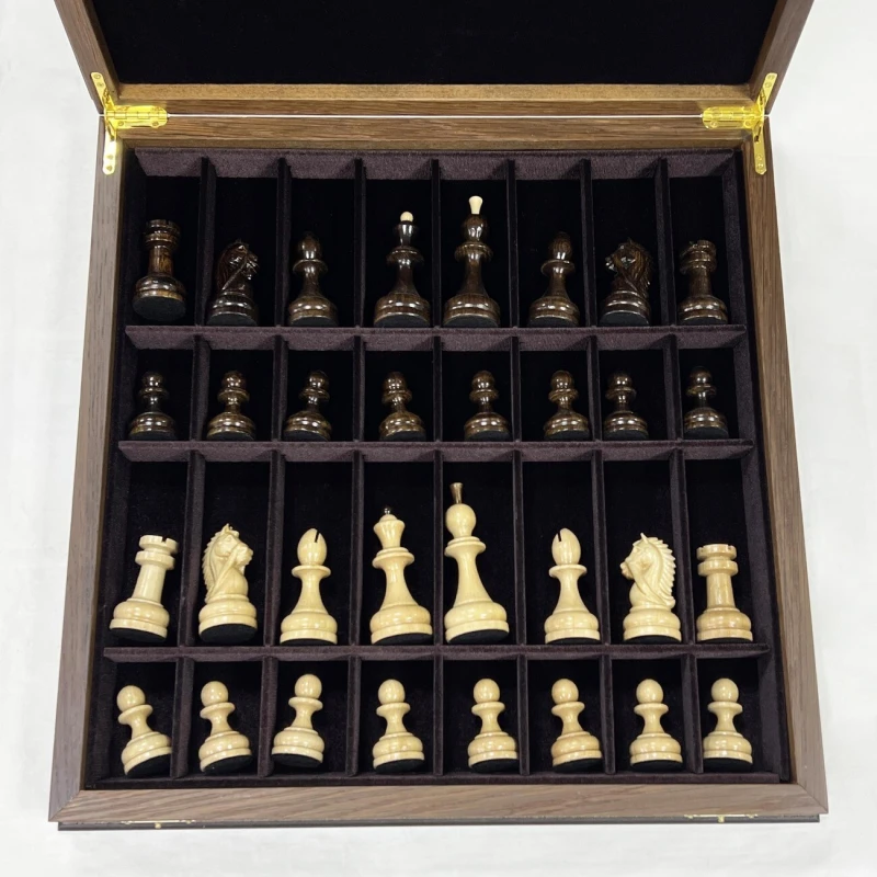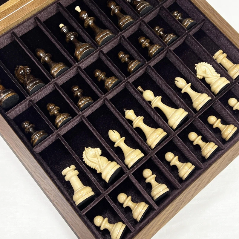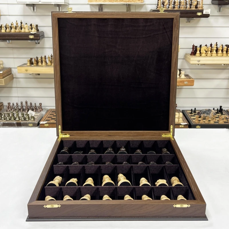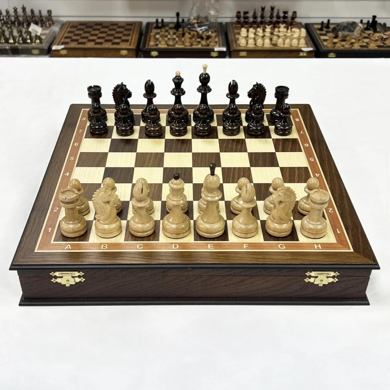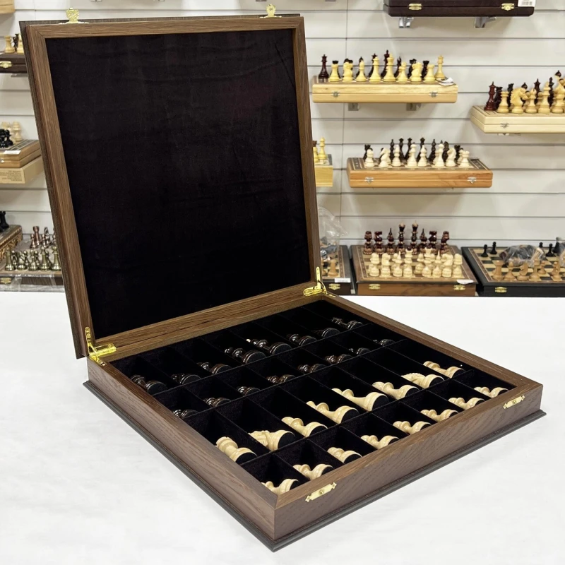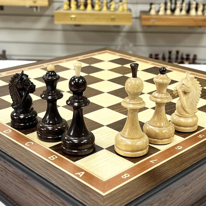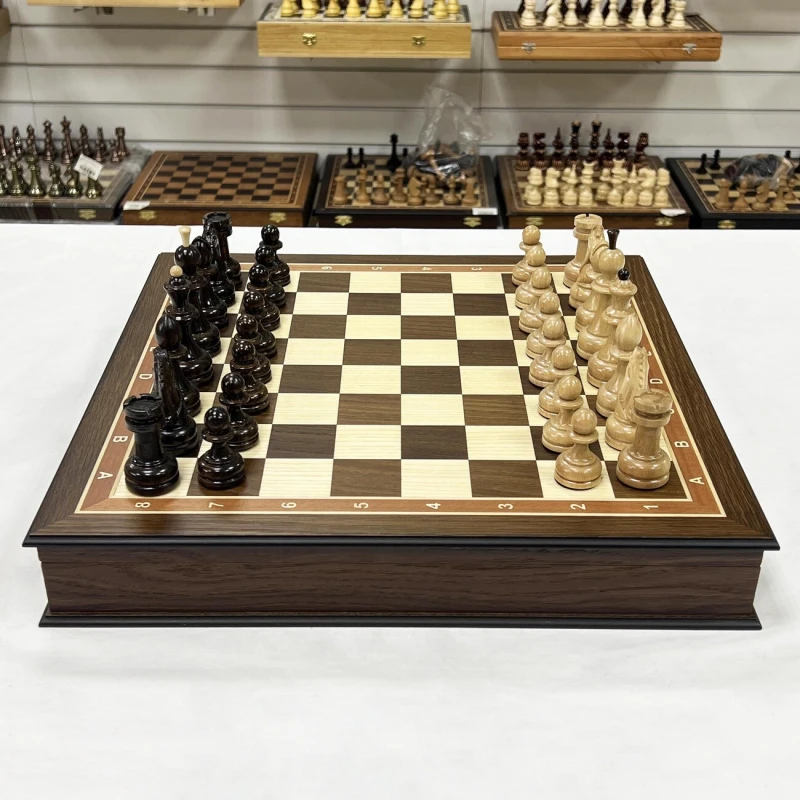 Шахматы подарочные из ценных пород дерева ручной работы. Размеры доски 45х45см. В комплекте фигуры резные из граба с утяжелением, отлично сочетаются с доской. Внутри ларца имеются ячейки для фигур, оббитые бархатом. Высота Короля - 10 см Высота пешки - 5 см Материал доски - Мореной дуб Антик Материал фигур - Граб Диаметр основания короля - 3.7 см Диаметр основания пешки - 3 см Размер клетки - 4.5 см Шахматы деревянные - это элегантная и изысканная настольная игра для двоих, которая не только развивает логическое мышление, но и приносит удовольствие от тактических сражений на шахматной доске. Эти шахматы подарочные являются прекрасным выбором для любителей этой древней игры. Изготовленные из качественного дерева, шахматы обладают прочностью и долговечностью. Деревянная текстура добавляет натуральности и теплоты внешнему виду шахмат. Эта классическая настольная игра представляет собой прекрасный способ провести время в компании близких или друзей. Шахматы требуют стратегического мышления, позволяют развивать аналитические способности и улучшать концентрацию. Они стимулируют мозговую активность и помогают тренировать память. Неотъемлемая часть культуры и искусства, шахматы подарочные являются прекрасным подарком для ценителей этой игры. Они могут быть отличным презентом на праздник или юбилей, символизируя уважение к интеллектуальным способностям и стратегическому мышлению. Одной из главных особенностей этих шахмат является их большой размер, что делает игру еще более захватывающей и интересной. Большие фигуры создают эффектное зрелище на игровом поле и позволяют игрокам лучше видеть и анализировать ходы. Каждая фигура шахмат ручной работы имеет свою уникальную форму и детали, которые придают им особый шарм. Мастерски выполненные короли, ферзи, слоны, кони, ладьи и пешки обязательно поразят ваш глаз своей красотой. Погрузитесь в мир шахматных сражений с этими деревянными шахматами. Они станут вашим верным спутником в стратегических баталиях и помогут развить ваше мышление до новых высот. Приглашайте своих друзей на партию шахмат и наслаждайтесь увлекательной тактической игрой!