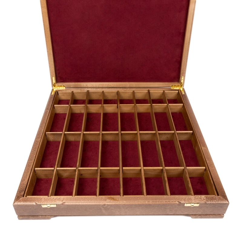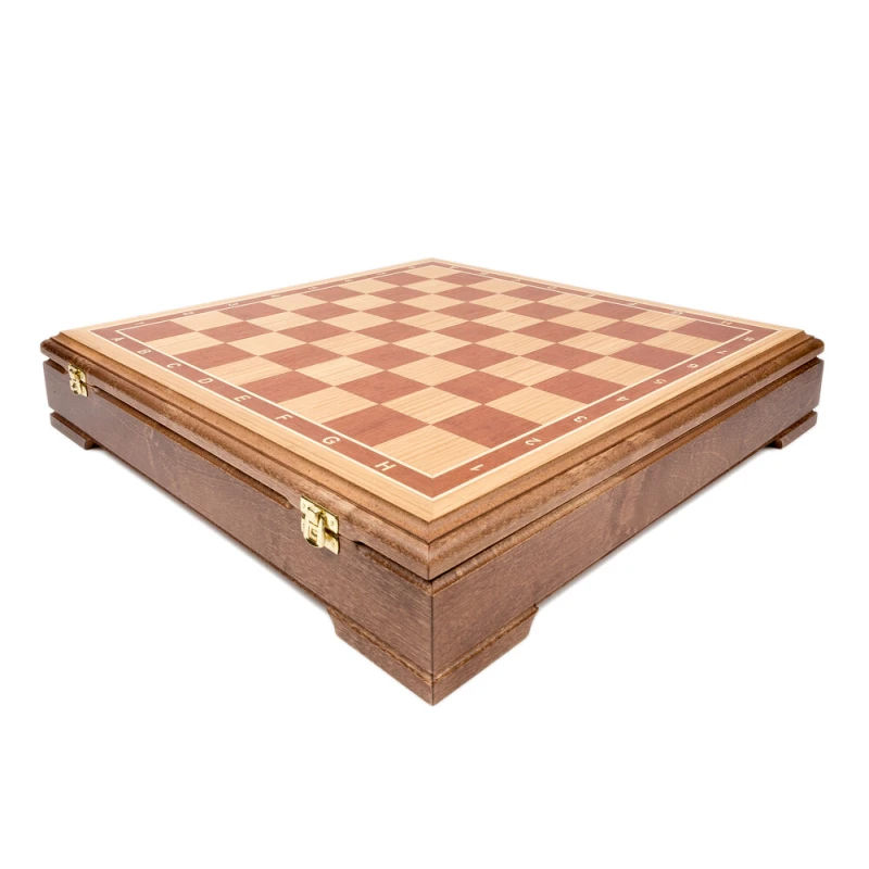 Классический шахматный ларец (без фигур) в стиле Стаунтон. Материал изготовления дуб, береза. Внутри ячейки для хранения каждой фигуры. Доска закрывается на 2 замка. Производство Россия.