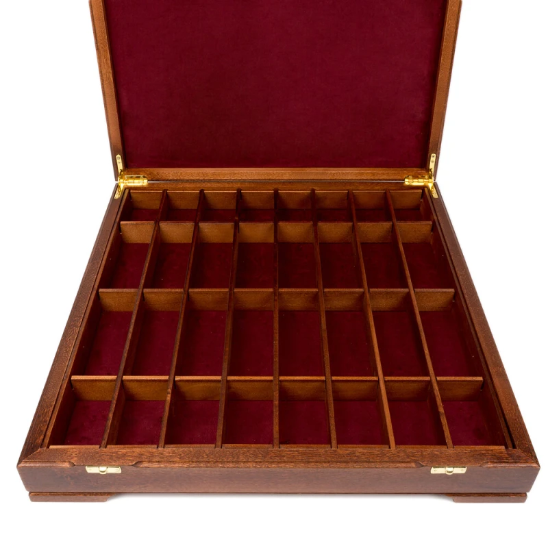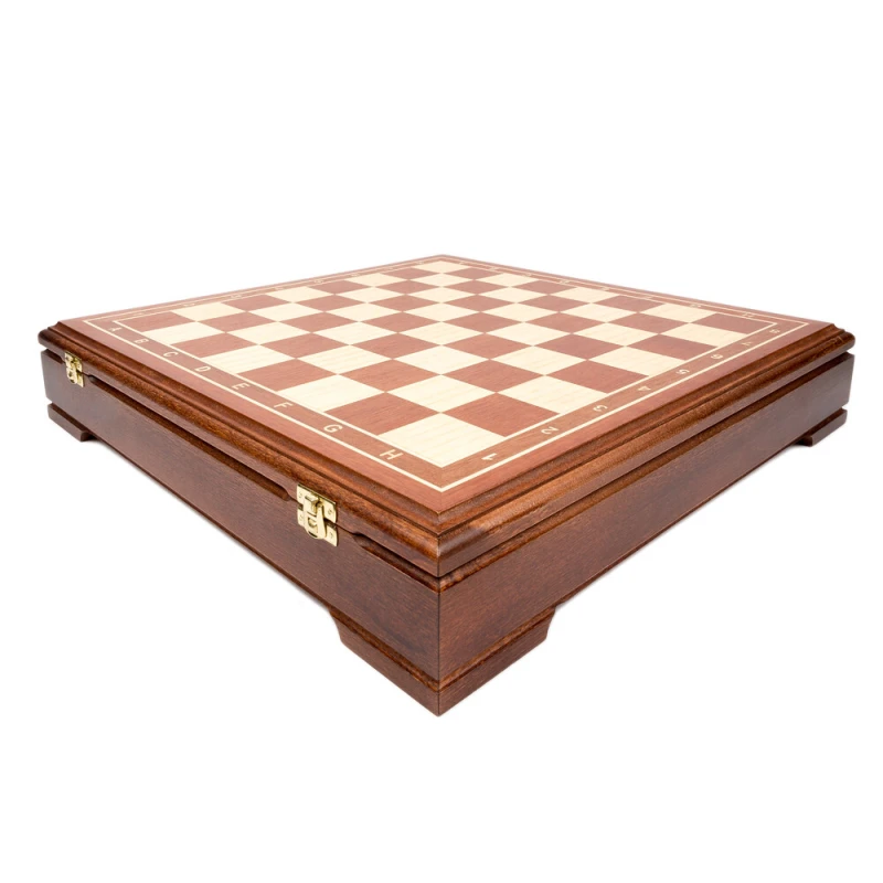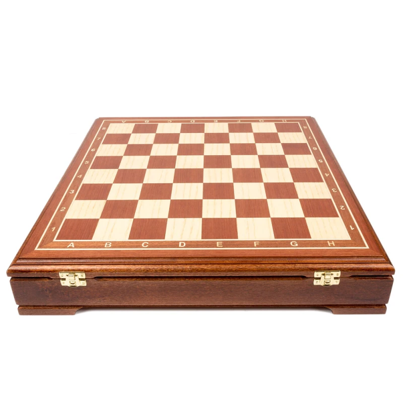 Классический шахматный ларец (без фигур) в стиле Стаунтон. Материал изготовления махагон, береза. Внутри ячейки для хранения каждой фигуры. Доска закрывается на 2 замка. Производство Россия.