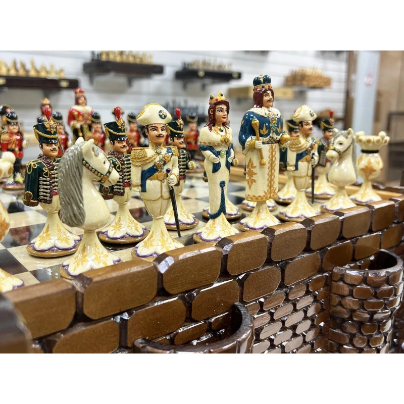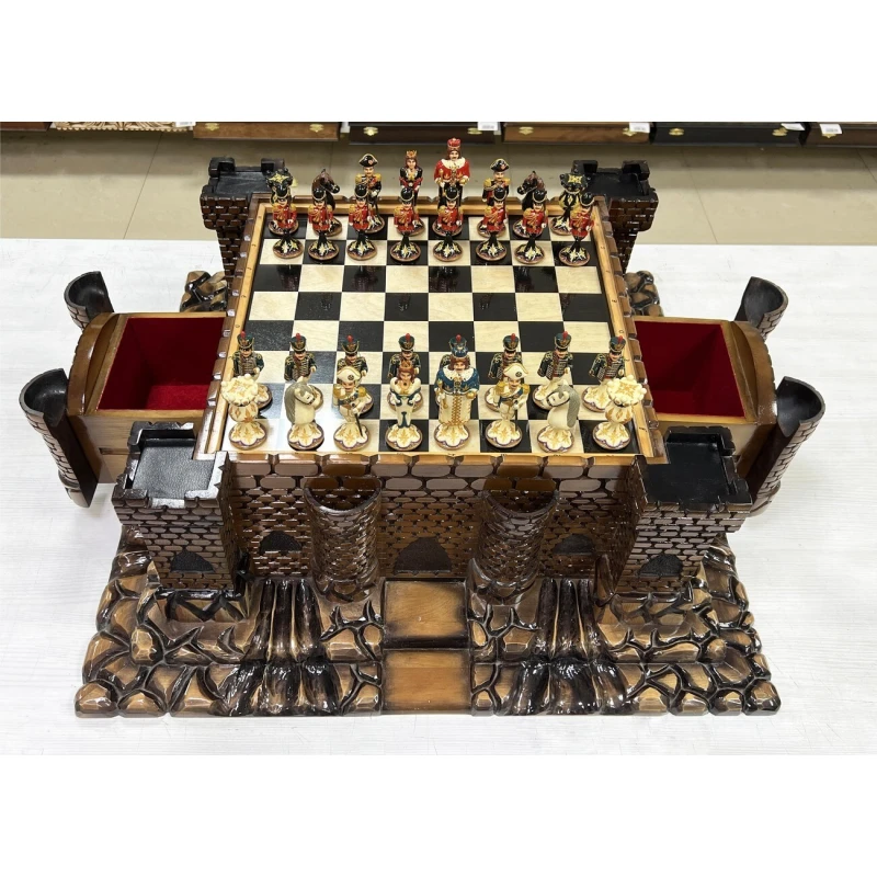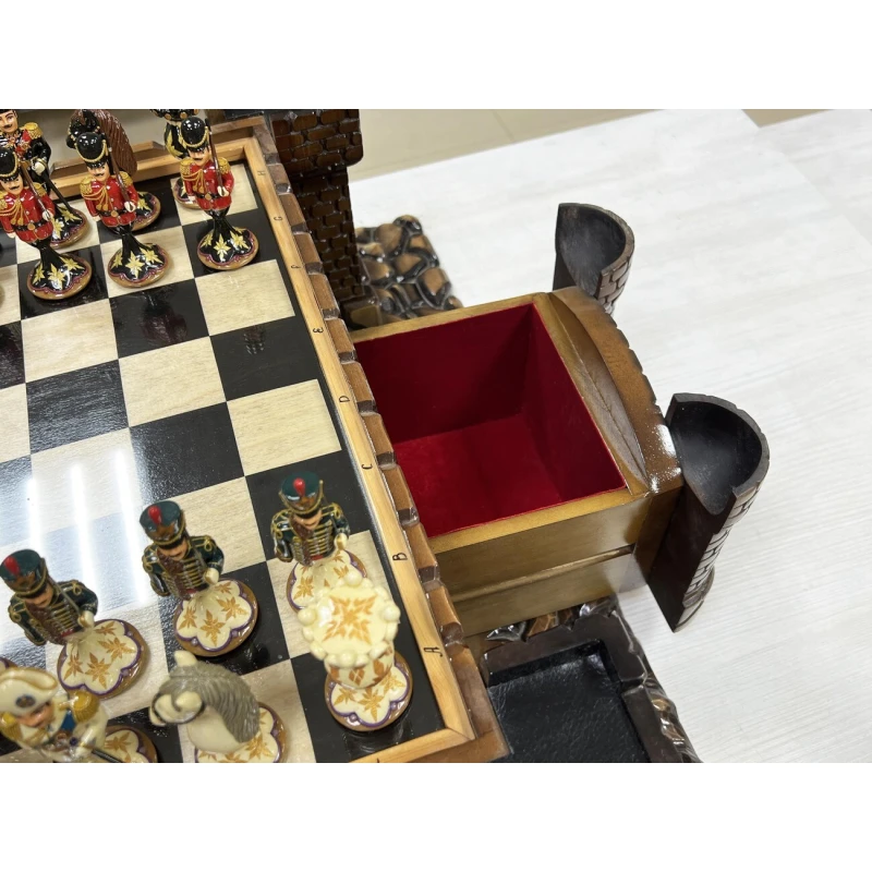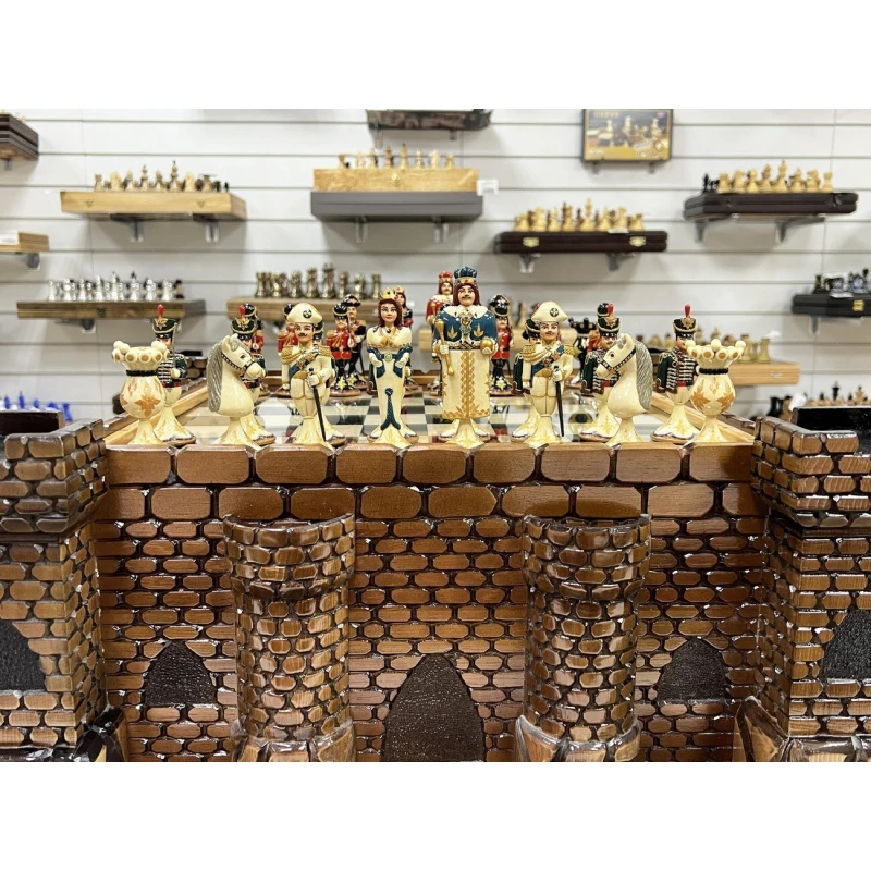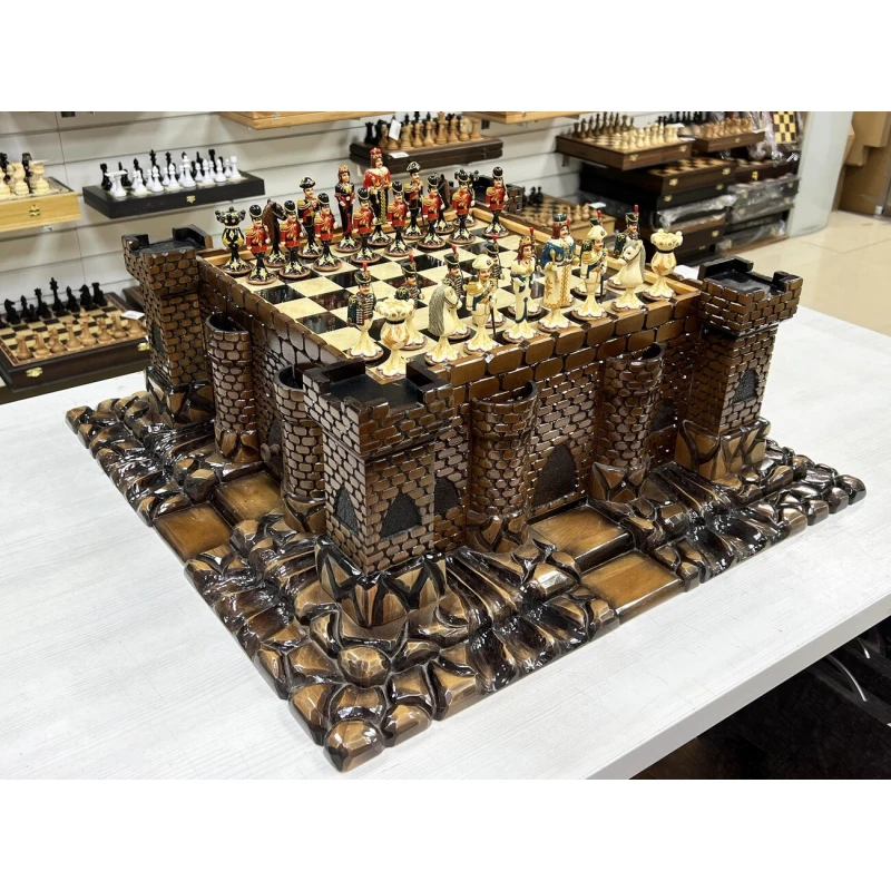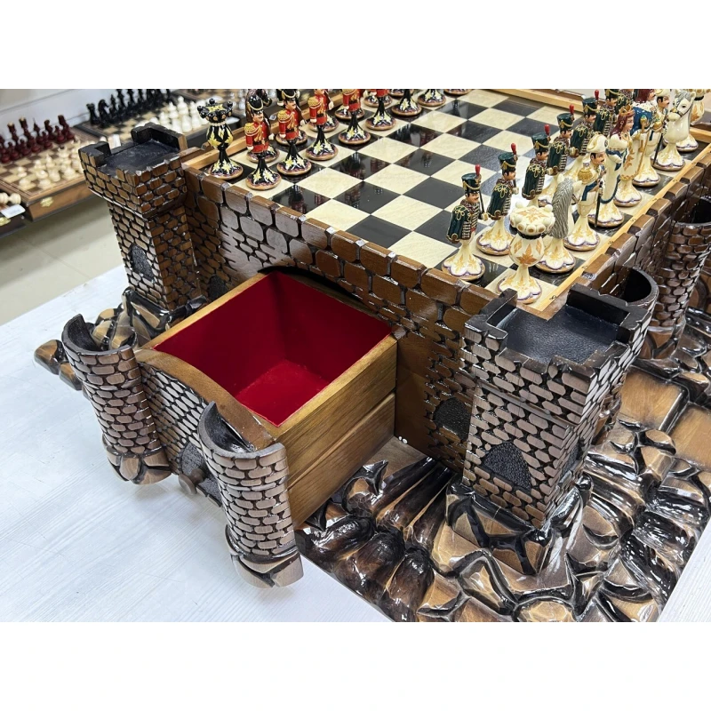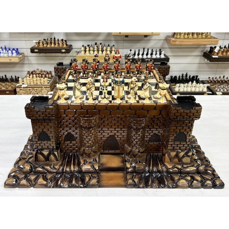 Эксклюзивный шахматный ларец ручной работы в виде средневекового замка с фигурами из хлеба в стиле Царская Россия