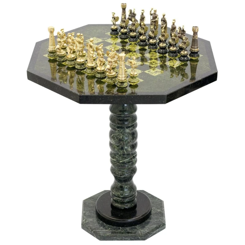 Теги: Шахматный стол фигуры "Римские" на подставках бронза змеевик, Шахматы