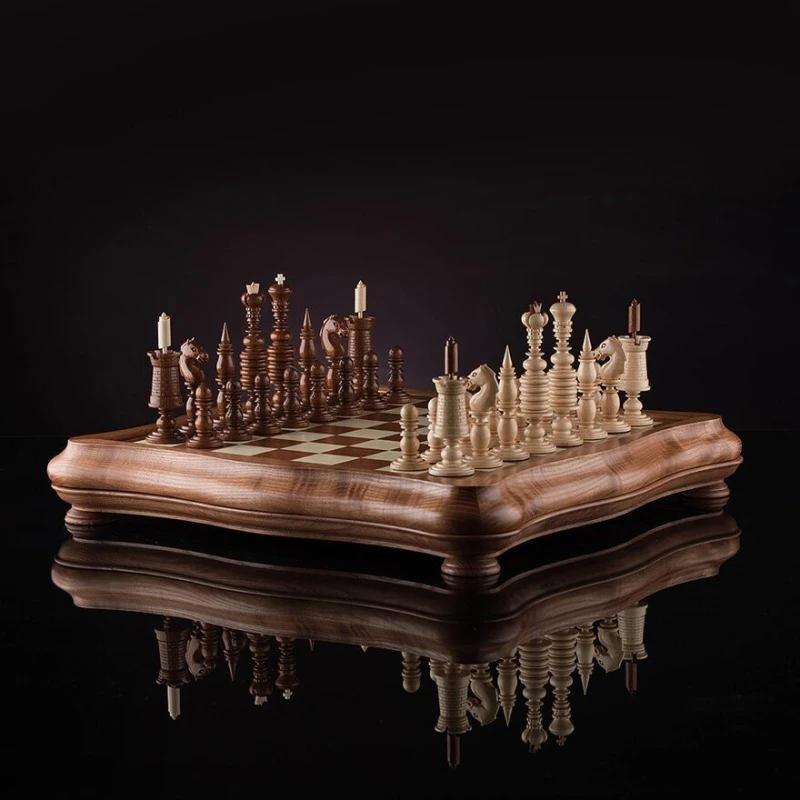 Стиль «Барлейкорн» один из самых старинных и значимых в истории шахмат. В 18 веке получил основное распространение в Англии, но вскоре покорил и другие страны, потому, как шахматы в стиле «Барлейкорн», будучи незабываемым и оригинальным подарком , зачастую отправлялись английскими лордами своим иностранным друзьям и политическим союзникам. Название свое получили от схожести средней части ферзя и короля с кукурузным початком. Прекрасная токарная работа и ажурная резьба делает шахматы элегантными , привлекая к себе внимание своей экзотичностью в дизайне. Скрупулезно и творчески проработанная форма фигур - дополнительное удобство в процессе игры, где даже неискушенные игроки понимают, где король, а где слон или, к примеру, ладья. Игра – это одна из сторон шахматного комплекта «Барлейкорн», другая, не менее интересная сторона – стильное решение шахматной доски, сохраняющей исторически выдержанную форму и удобство конструкции. Гармонично впишется практически в любой классический интерьер, украшая его и придавая особый шарм