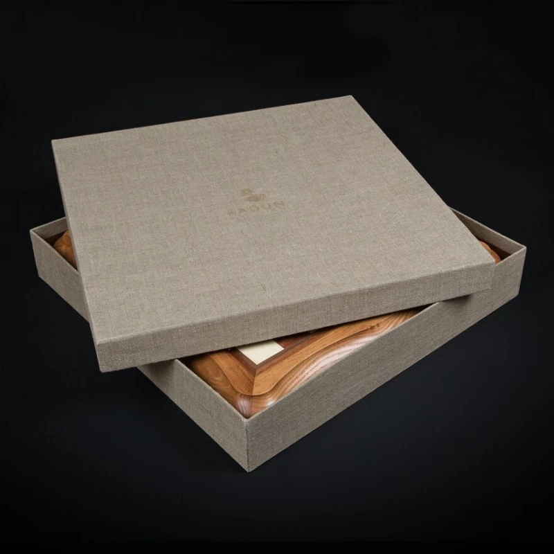 конструкция доски со съемной верхней крышкой, в нижней части доски сделаны ячейки для каждой фигурки, ножки подклеены тканью.