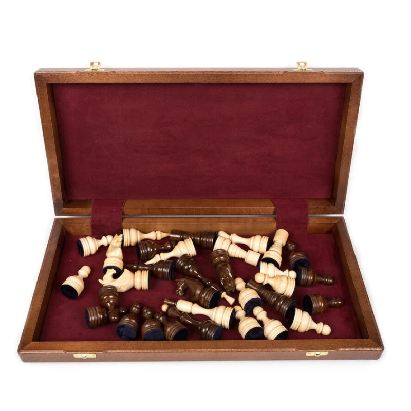 Шахматная доска выполнена складной. Это очень удобно как с точки зрения хранения шахматных фигур внутри доски, так и компактности, что облегчает процесс их перевозки. Внутренняя поверхность доски является местом для хранения фигур и обшита мягким высококачественным бархатом, что снижает износ фигур при хранении и их грохот при их транспортировке. Также бархатная обшивка, вне всяких сомнений, придает шахматам эстетичный и дорогой внешний вид.