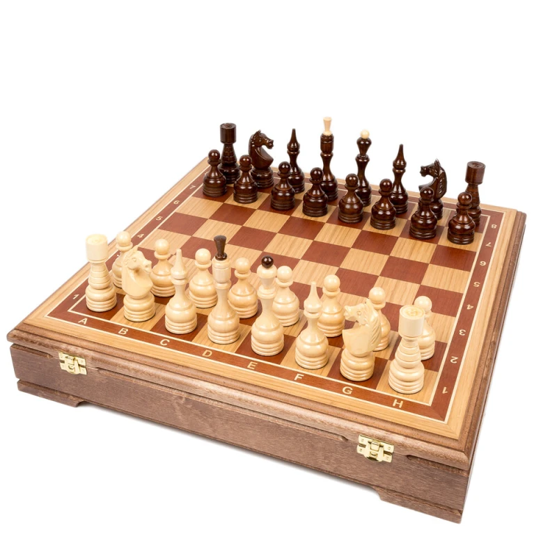 Классические шахматы с фигурами Бастион. Материал фигур орех. Материал доски дуб, береза.