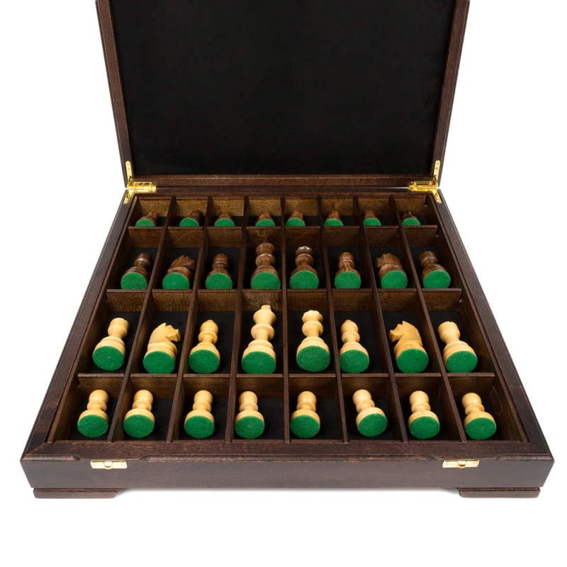 Шахматы Дебют Стаунтон орех изготавливаются в ручную. Материал доски орех, береза. Материал светлых фигур самшит, материал темных фигур палисандр. Производство Россия.