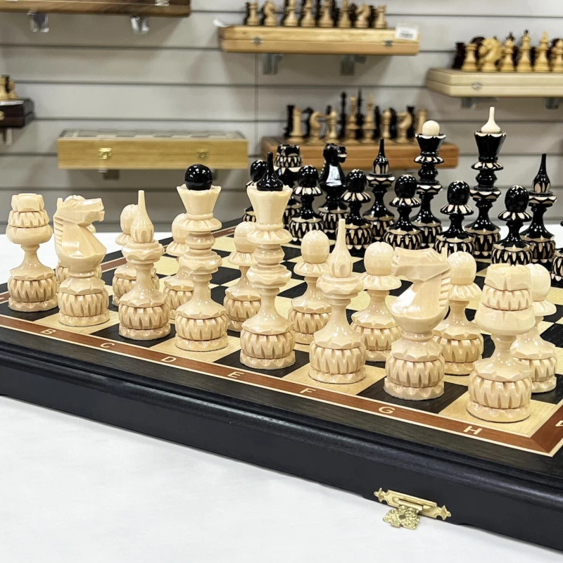 Купить деревянные шахматы, шахматы ручной работы, резные шахматы, подарочные шахматы, шахматные доски, шахматные фигуры можно в наших магазинах в Москве и в Санкт Петербурге.