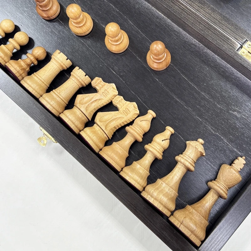 Доска сделана из матированного дерева. Материал шахматных фигур - бук. Фигуры утяжеленные и сделаны в классическом стиле Стаунтон. Размер доски в разложенном виде 40 х 40 см. Фигуры идеально помещаются во внутрь доски, что позволит надежно хранить и защитить от внешних факторов. Высота короля -10 см, высота пешки - 5 см. Отличный подарок для взрослых и детей.