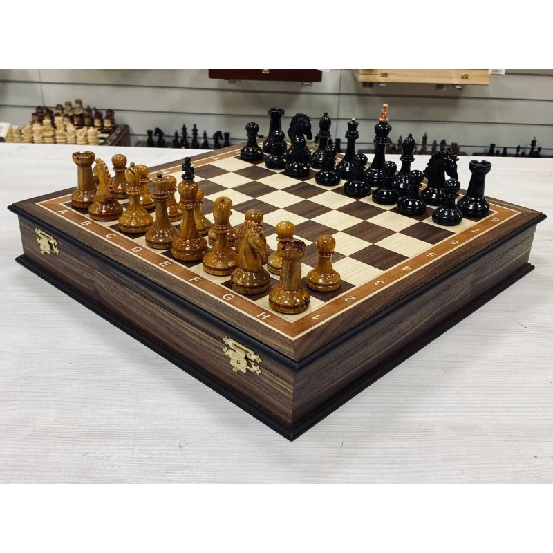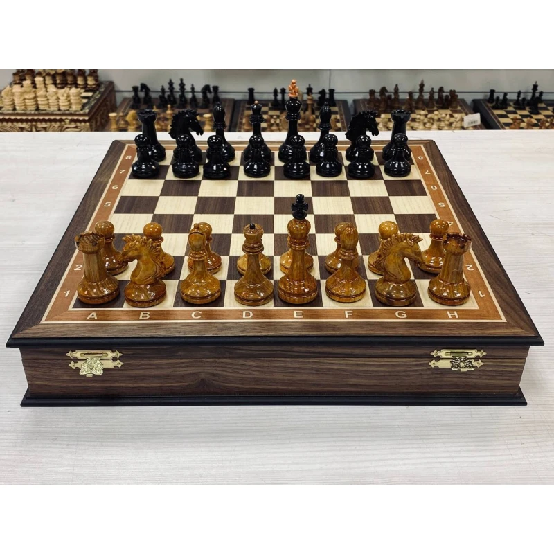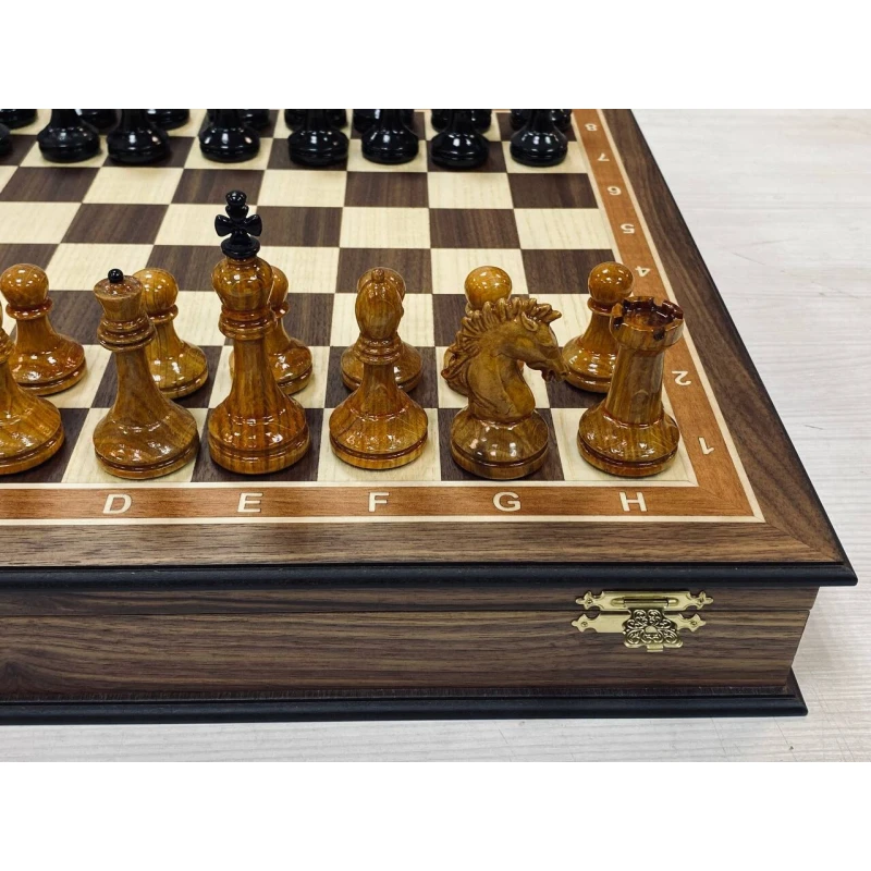 Красивые шахматы ручной работы в ларце из ореха