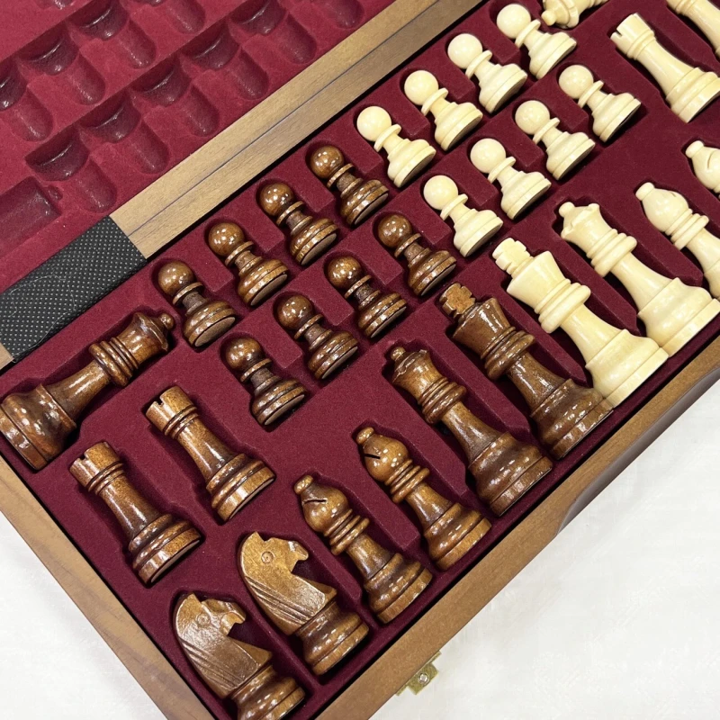 Классические магнитные шахматы с доской из шпона ореха. Идеально подойдут для поездок или для обучения начинающих игроков. В комплекте идет доска и деревянные фигуры. Размер набора -38 х 38 см. Внутри ячейки для хранения фигур.