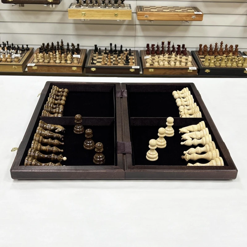 Изготовленные из качественного дерева, шахматы обладают прочностью и долговечностью. Деревянная текстура добавляет натуральности и теплоты внешнему виду шахмат.