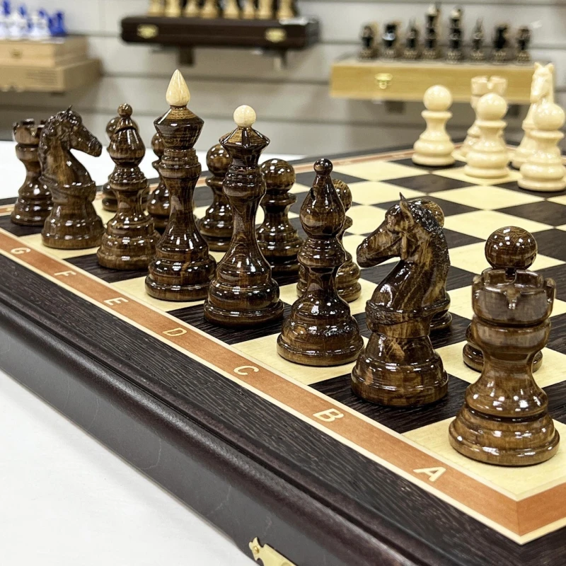 Погрузитесь в мир шахматных сражений с этими деревянными шахматами. Они станут вашим верным спутником в стратегических баталиях и помогут развить ваше мышление до новых высот. Приглашайте своих друзей на партию шахмат и наслаждайтесь увлекательной тактической игрой!