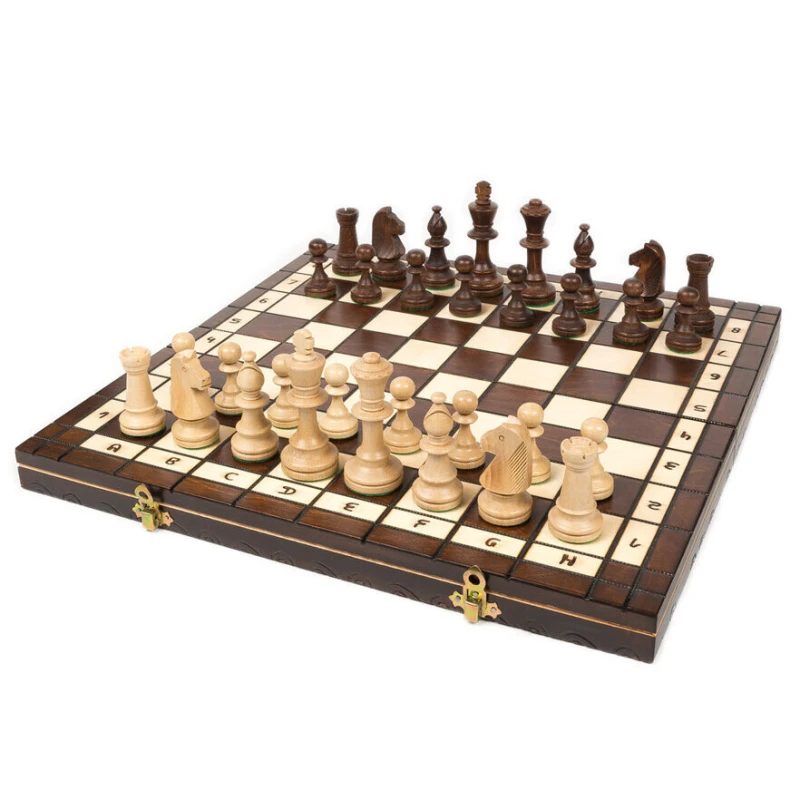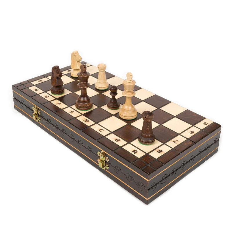 Классические шахмат с утяжеленными фигурами. Внутри доски есть 2 отсека для хранения фигур. Производство Польша. Размер доски в разложенном виде 40 на 40 см, размер клетки 4 на 4 см. Подойдут в подарок для детей и взрослых.