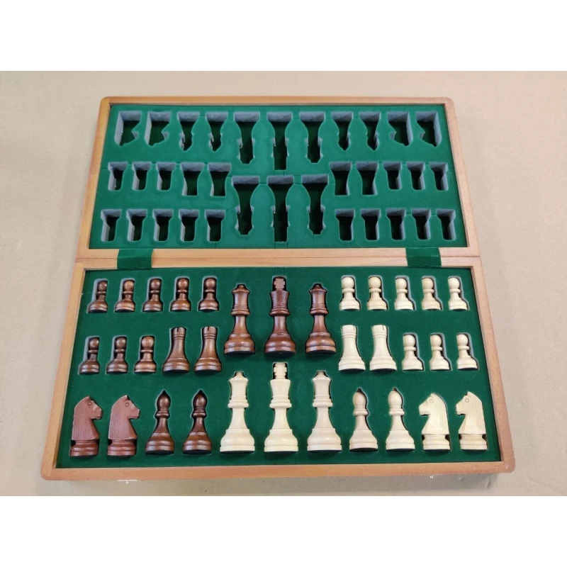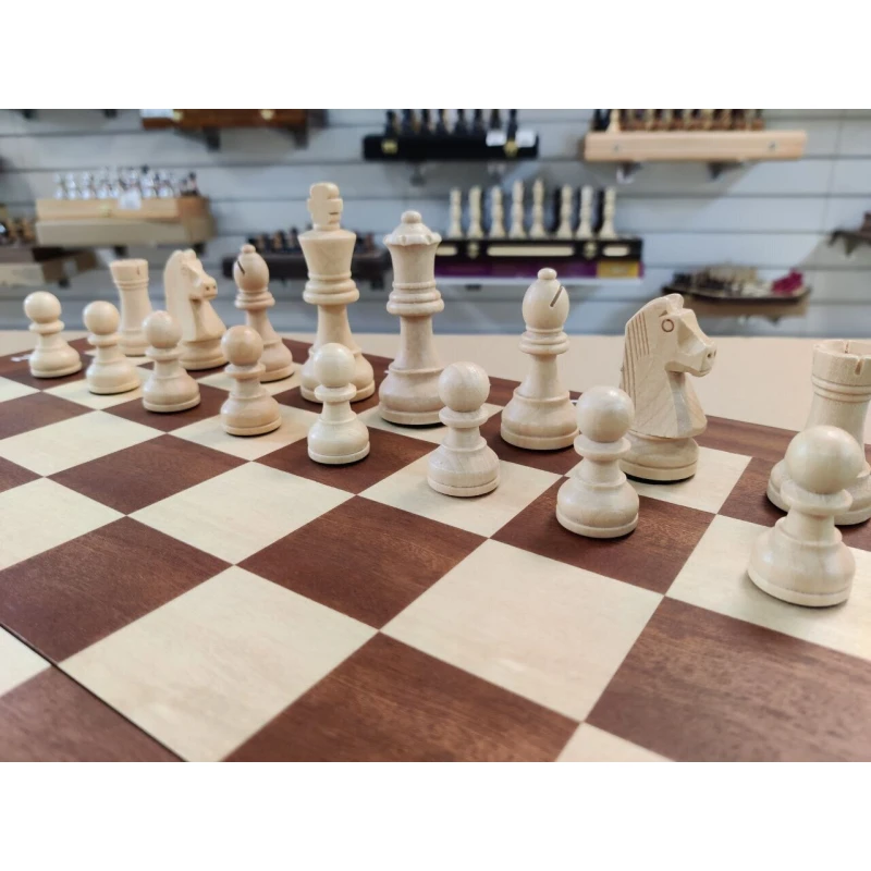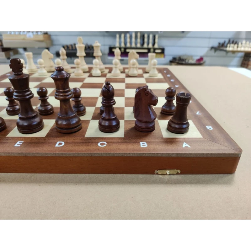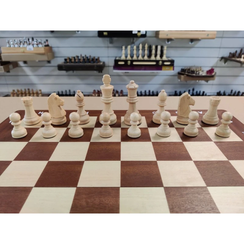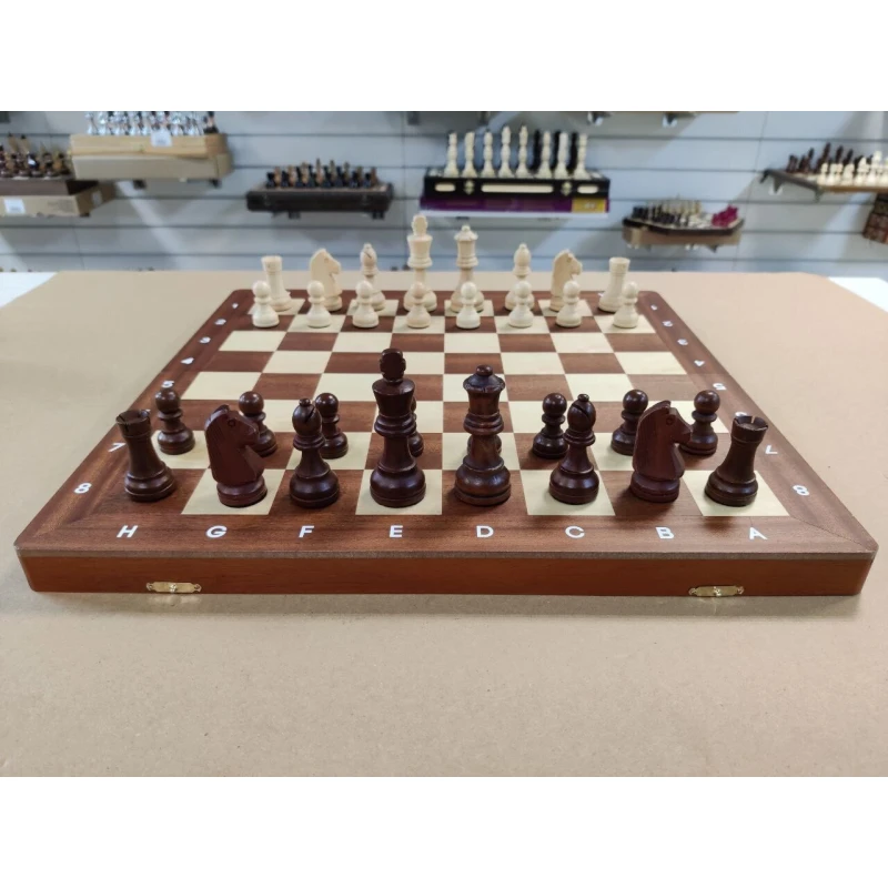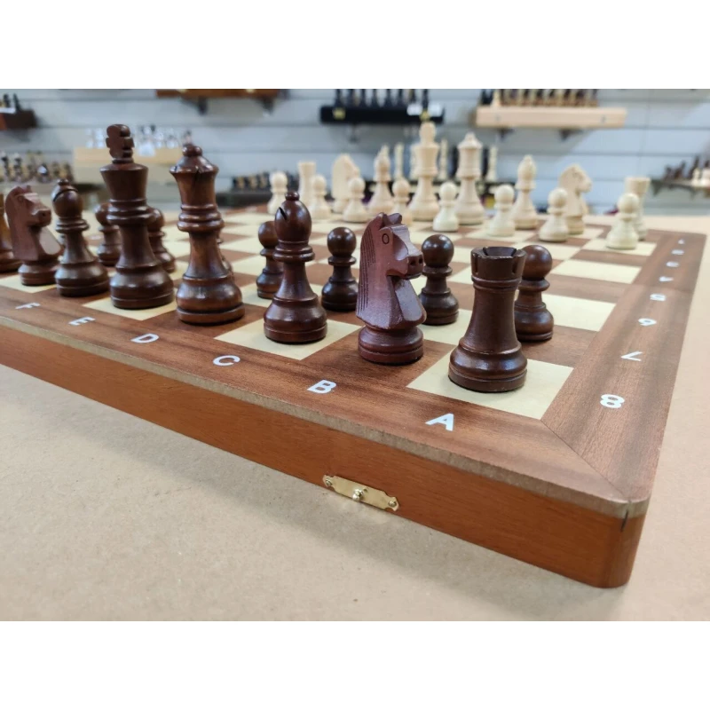 Классические шахматы в стиле Стаунтон. Размер доски в разложенном виде 47 на 47 см. Высота короля 9.5 см, высота пешки 4.5 см. Шахматные фигуры с утяжелением. Шахматное поле сделано в технике инкрустация из красного дерева и клена. Фигуры с подклейкой. Внутри доски есть ячейки для хранения каждой шахматной фигуры. В комплекте есть дополнительные ферзи. Купить деревянные шахматы, шахматы ручной работы, подарочные шахматы, турнирные шахматы можно в наших магазинах в Москве и в Санкт Петербурге.