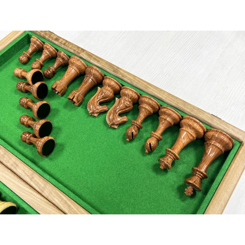 Большие шахматы 50 на 50 см в разложенном виде. Форма шахматных фигур классический Стаунтон. Шахматное поле собирается вручную из ценных пород дерева. Темная клетка эбен, светлая клен. Корпус доски сделан из массива ореха. Высота короля 11 см, высота пешки 6 см. Шахматы подойдут в подарок для детей и взрослых.