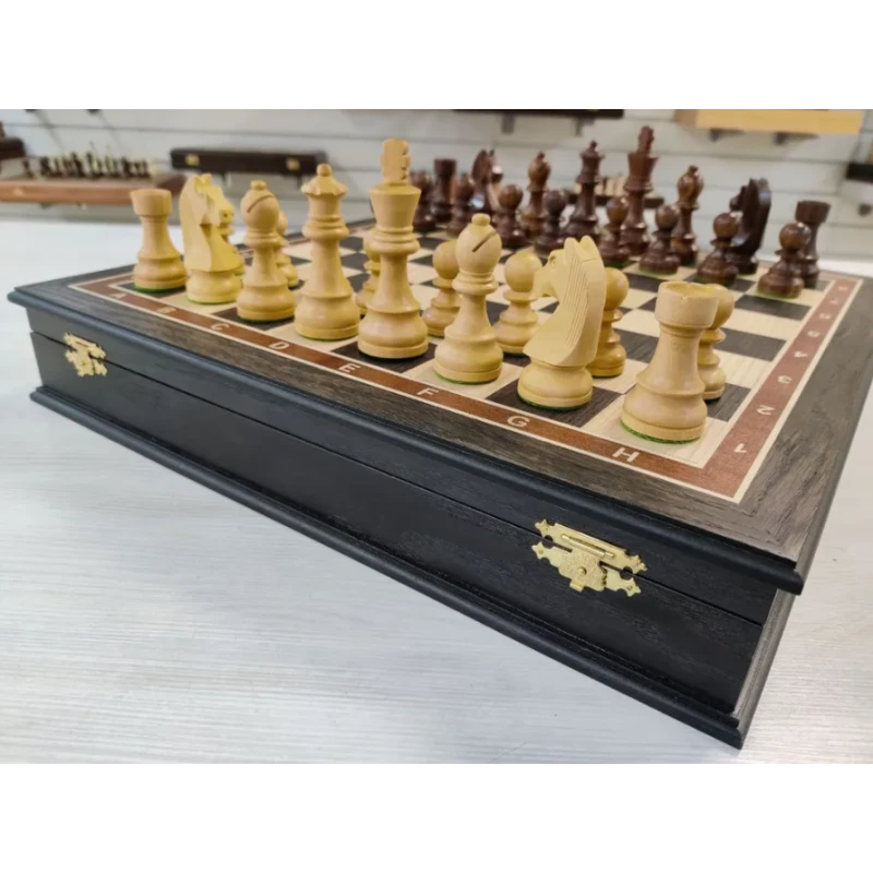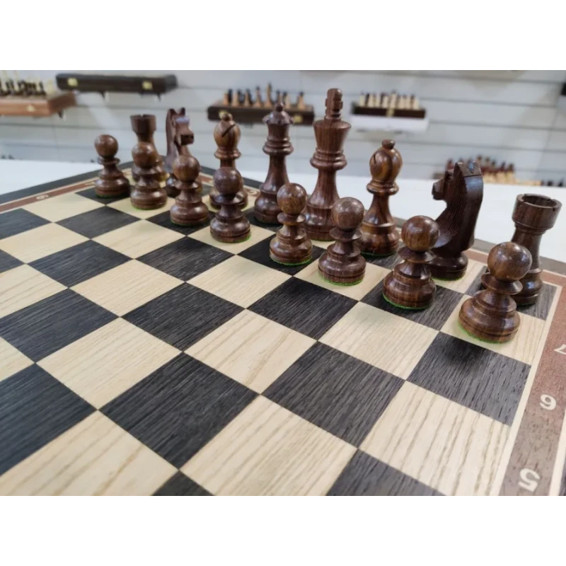 Профессиональные шахматы, которые станут отличным подарком для любителей этой увлекательной игры. Шахматы ручной работы изготовлены из мореного дуба с утяжелением, что обеспечивает им прочность и долговечность. Каждая фигура выполнена мастером своего дела, что придает им особый шарм и элегантность.