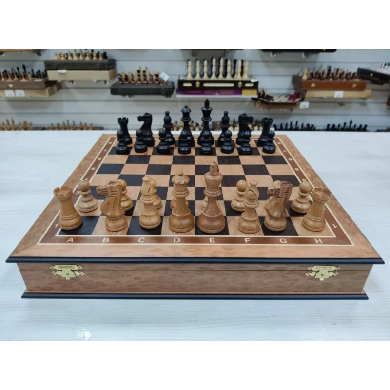 Шахматы в ларце выполнены из дерева, что придает им особый шарм и неповторимость. Каждая фигура создана мастерами с большим вниманием к деталям, поэтому они обладают не только функциональностью, но и художественной ценностью.
