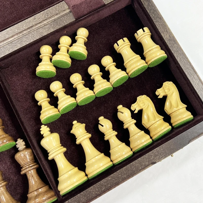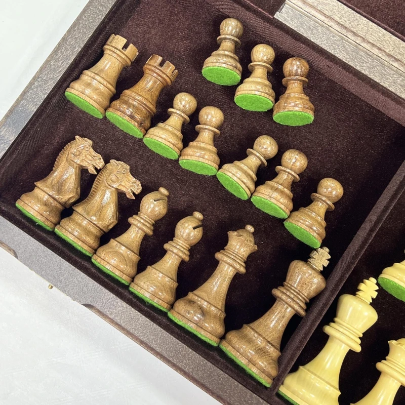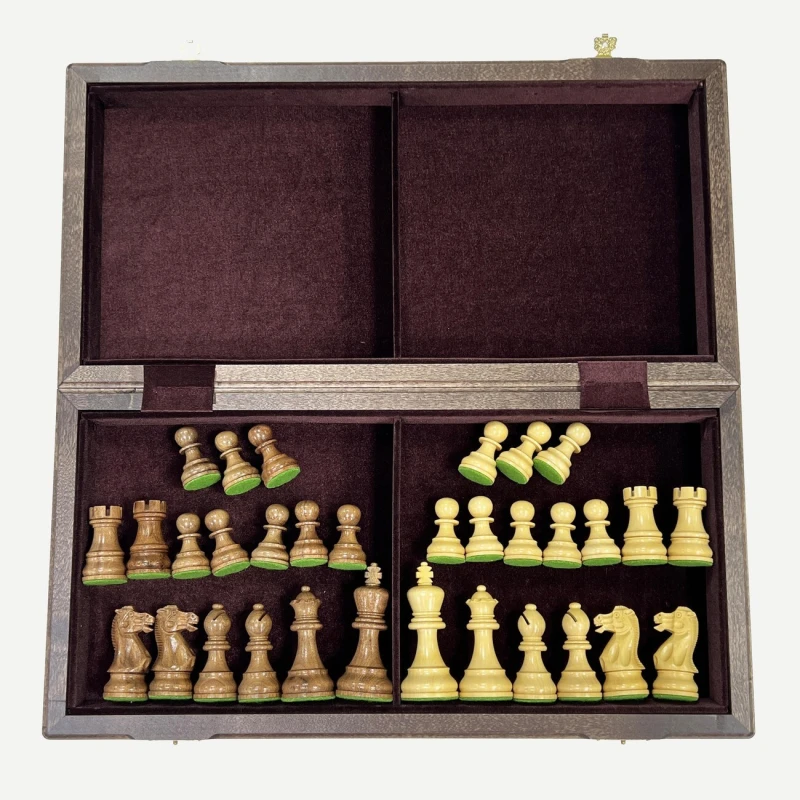 Шахматная доска выполнена складной. Это очень удобно как с точки зрения хранения шахматных фигур внутри доски, так и компактности, что облегчает процесс их перевозки. Внутренняя поверхность доски является местом для хранения фигур и обшита мягким высококачественным бархатом, что снижает износ фигур при хранении и их грохот при их транспортировке. Также бархатная обшивка, вне всяких сомнений, придает шахматам эстетичный и дорогой внешний вид.