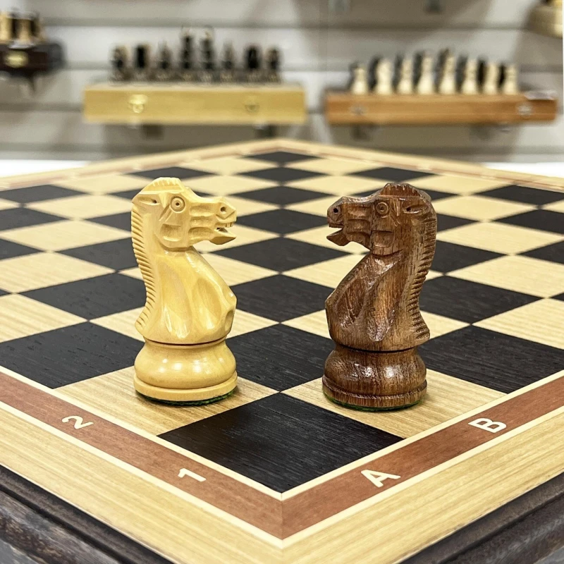 Шахматный фигуры серии «Эндшпиль», на наш скромный взгляд, одни из лучших на рынке. Вес комплекта данных фигур – около 2 килограммов. Фигуры выполнены утяжеленными, что придает им дополнительную устойчивость на доске. Произведены данные фигуры в Индии и выполнены из редких для нашей страны пород дерева: светлые фигуры из самшита, а темные – из эбонированного палисандра. Шахматная фигура «Конь» - визитная карточка данных фигур, выполнена полностью вручную виртуозными индийскими мастерами.