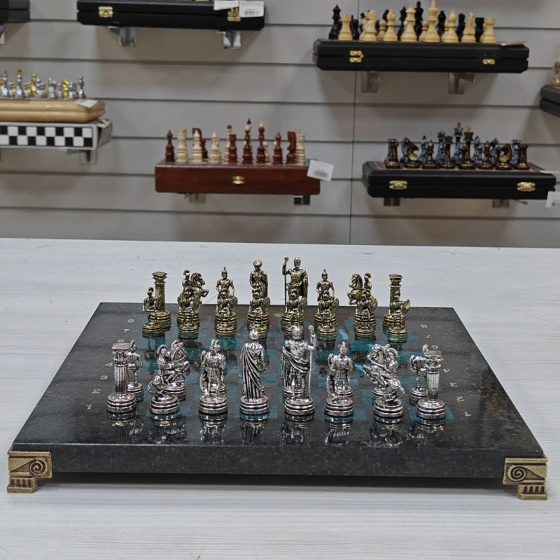 Шахматы подарочные - это уникальный товар из категории Шахматы. Эти шахматы являются настоящим произведением искусства и представляют собой неповторимую комбинацию каменной доски и металлических фигур.Каждая фигура выполнена из прочного металла, что делает ее долговечной и стойкой к повреждениям. Каменная доска имеет размер 28 см, благодаря этому сядут в любой интерьер и поместятся на любой стол.Эти шахматы являются не только игровым набором, но и предметом коллекционирования. Они выполнены вручную с большой тщательностью и вниманием к деталям, поэтому каждый экземпляр является уникальным произведением ручной работы.