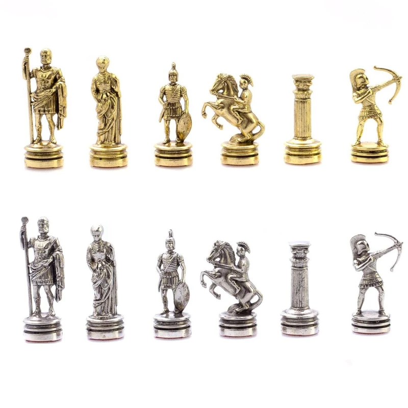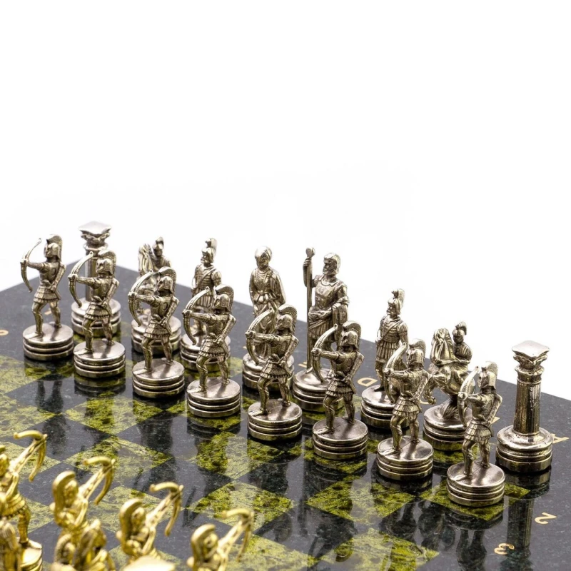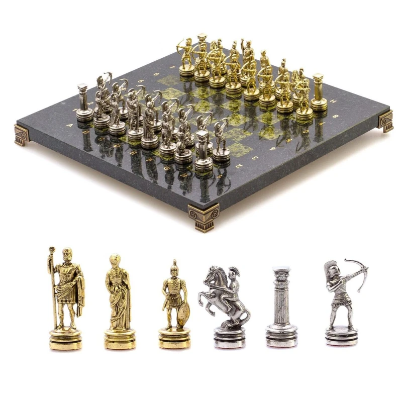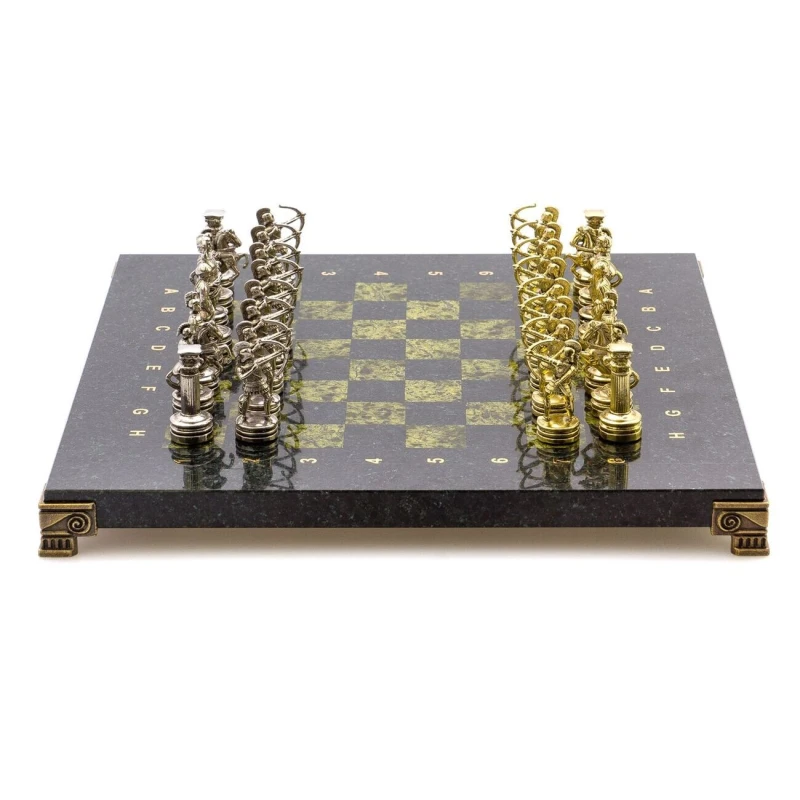 Подарочные шахматы с каменной доской и металлическими фигурами.