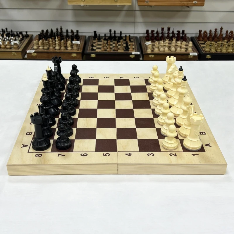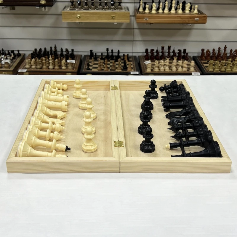Шахматный набор, созданный для комфортной и увлекательной игры! Эта шахматная доска размером 43 на 43 см в разложенном виде выполнена из натуральной сосны, что придает ей теплый и приятный вид. В комплекте идут шахматные фигуры классического дизайна, изготовленные из прочного пластика. Размер короля составляет 10,5 см, а размер пешки - 5,5 см. Фигуры не утяжелены, что позволяет вам самостоятельно утяжелить их на свой вкус. Этот набор станет отличным выбором как для начинающих шахматистов, так и для опытных игроков, ценящих простоту, функциональность и возможность персонализации.